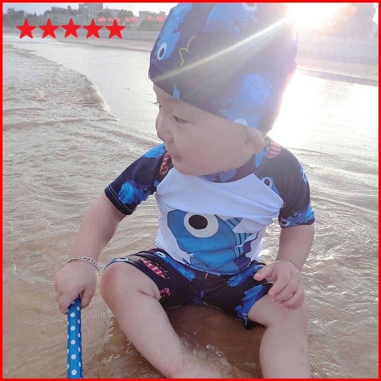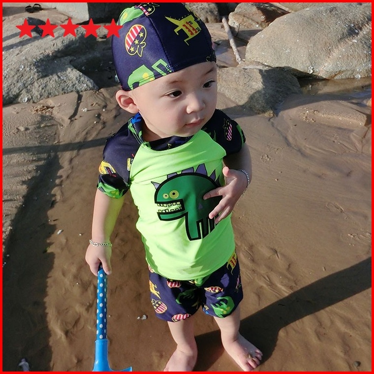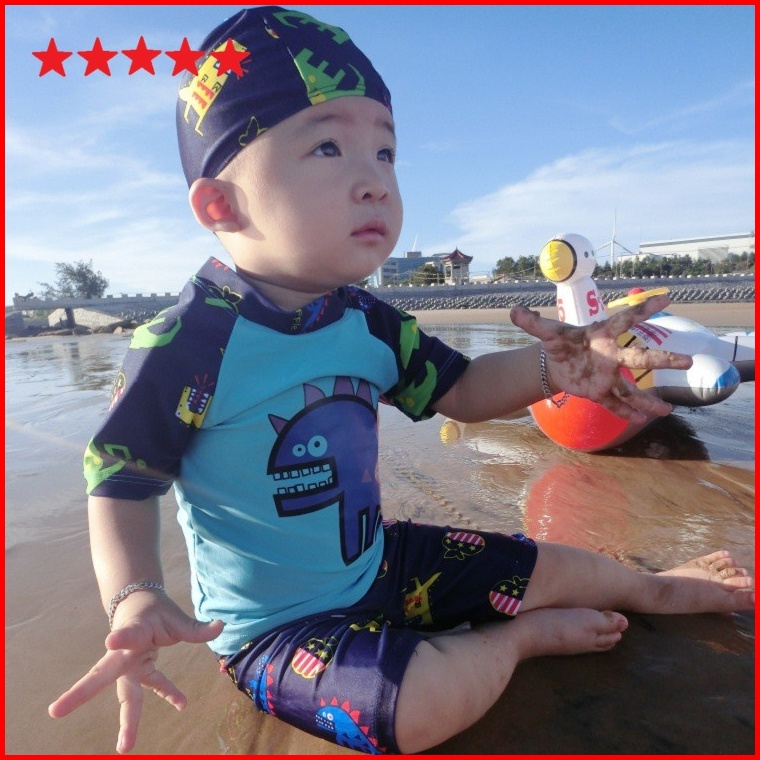 Ready 1-8tahun Anak Laki-laki Pakaian Renang Dengan Topi Anak Baju Renang Pakaian Renang Anak