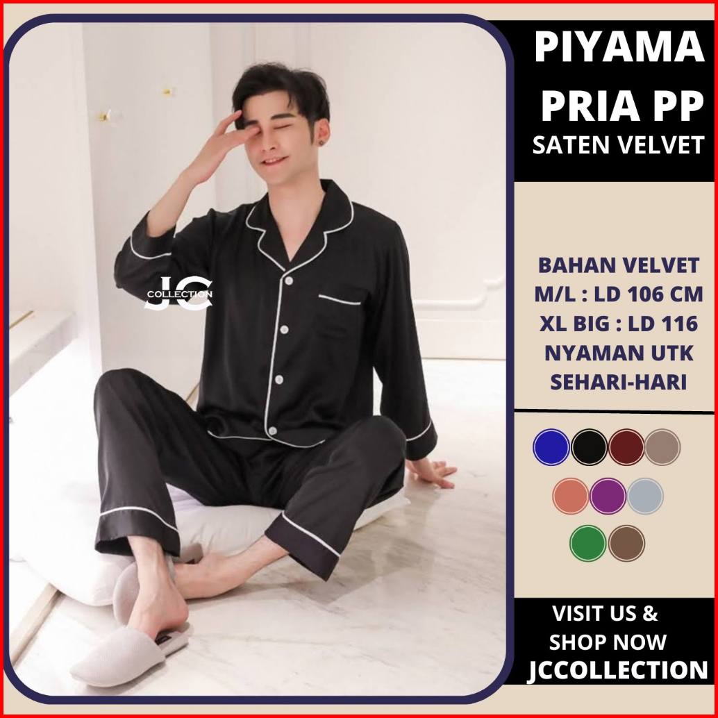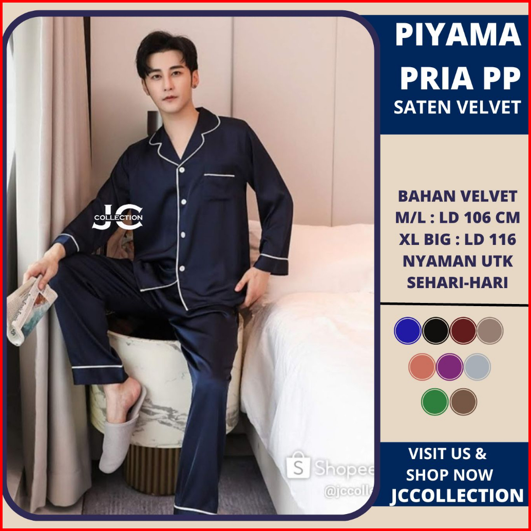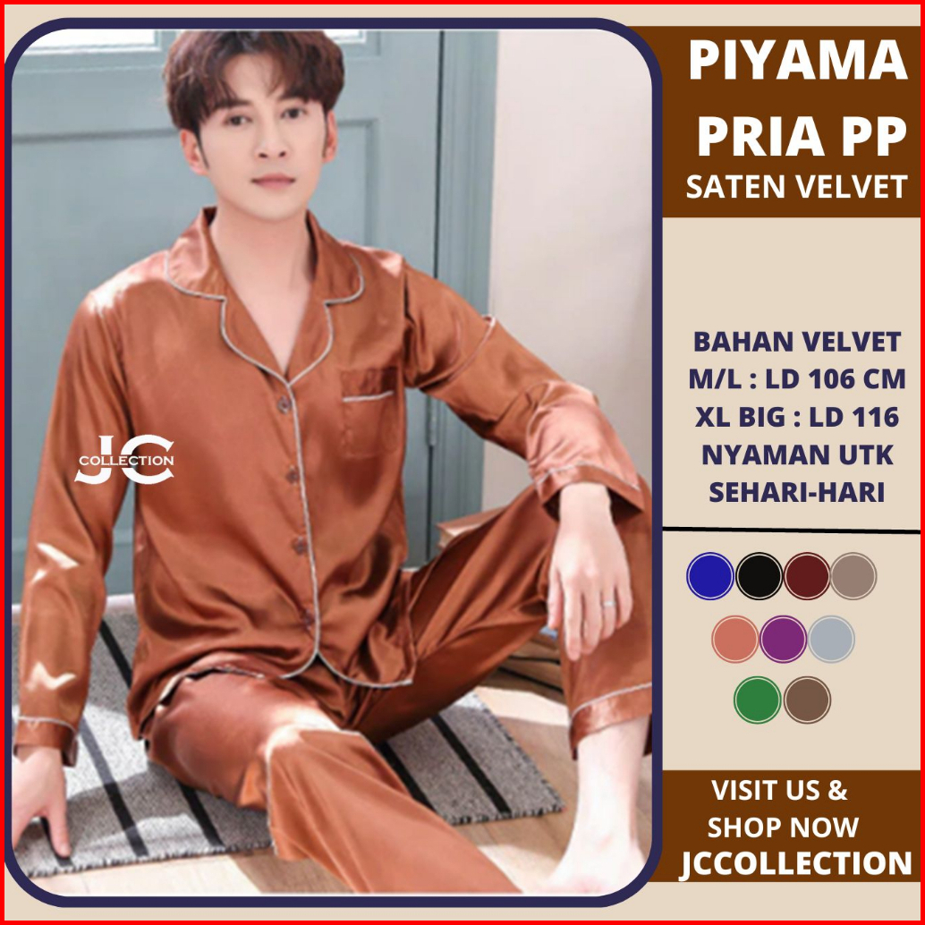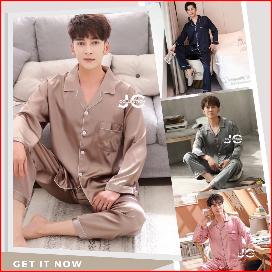 Piyama Pria Lengan Panjang Satin Pp L Pajamas Saten Long Piyama Satin Cowok Ls - Jccollections