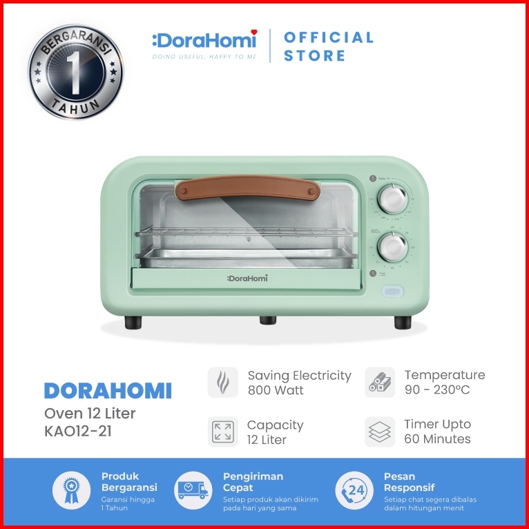 Dorahomi Oven Listrik Low Watt Electric Open Pemanggang Kue Alat Panggang Serbaguna 12 Liter 800 W