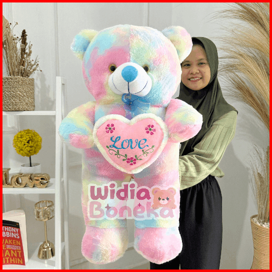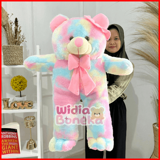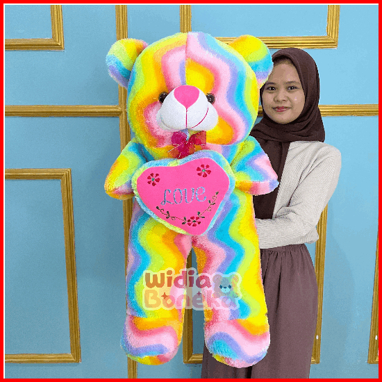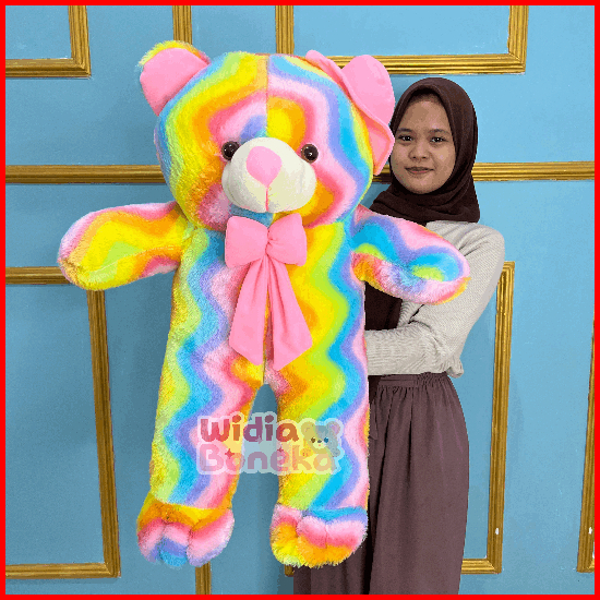 Boneka Tedy Bear Xl Rainbow Topi Pita