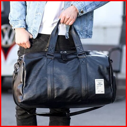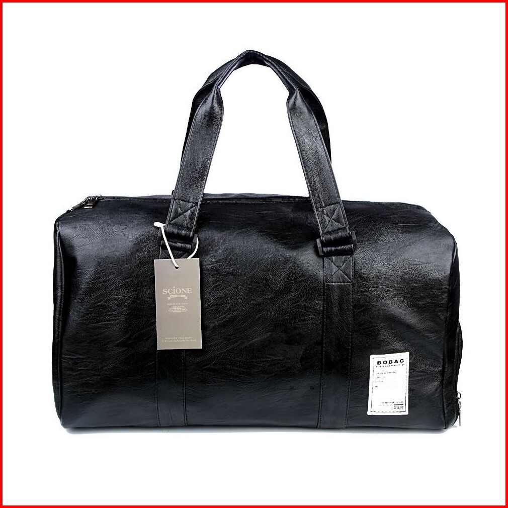 Travel Bag Gymbag Duffle Bag Hitam Kulit Kualitas Premium Ukuran Besar Ready