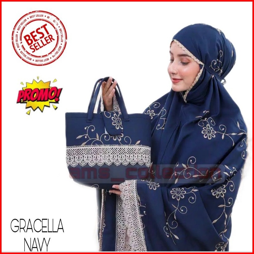 Mukena Dewasa Gracella Jumbo Full Bordir Bunga Teratai Mewah