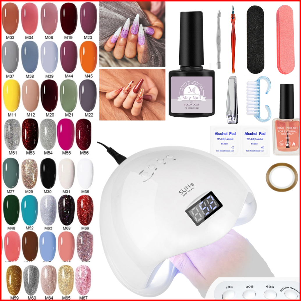 Alat Kutek Kuku Nail Art Set Kutek Gel Lampu Kuku Uv 48w 45 Warna Cat Kuku Gel Set Peralatan Manikur Seni Kuku Atasan Da