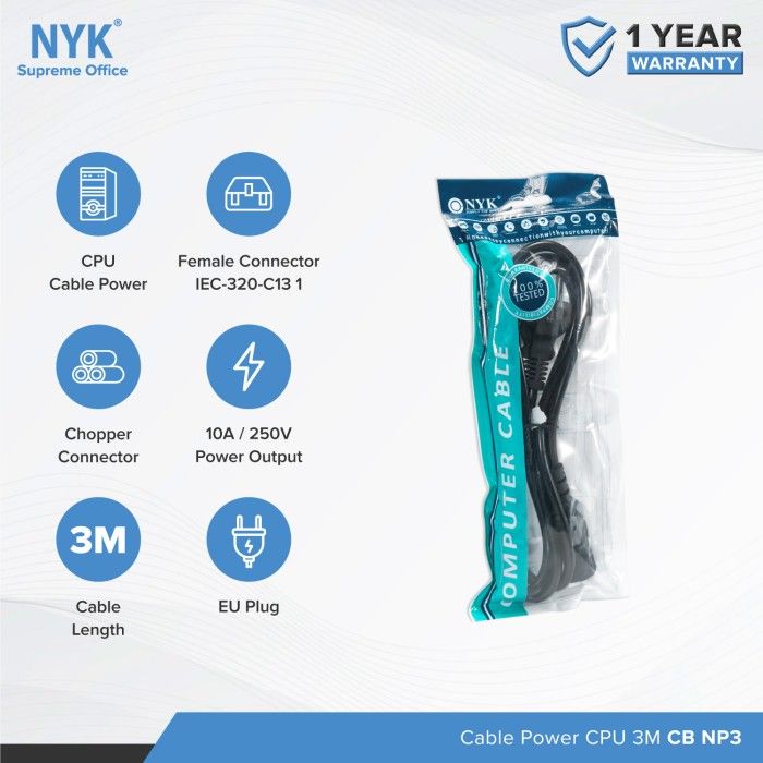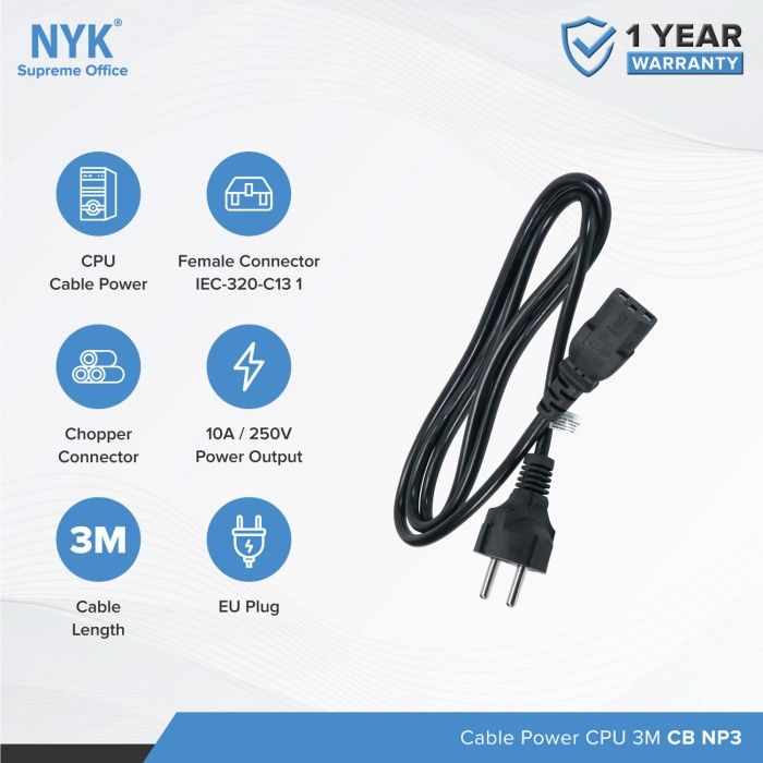 Kabel Power NYK PC Monitor Cpu Panci Listrik Universal 3 Meter
