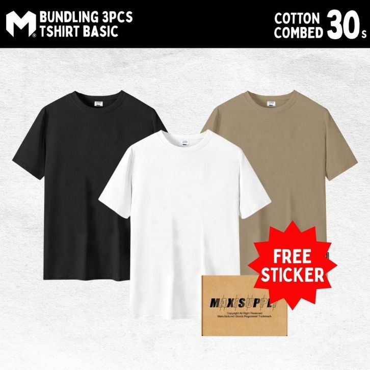 Kaos Pria Polos 3pcs Tshirt Tangan Pendek 30S (Cream) Maxisupply