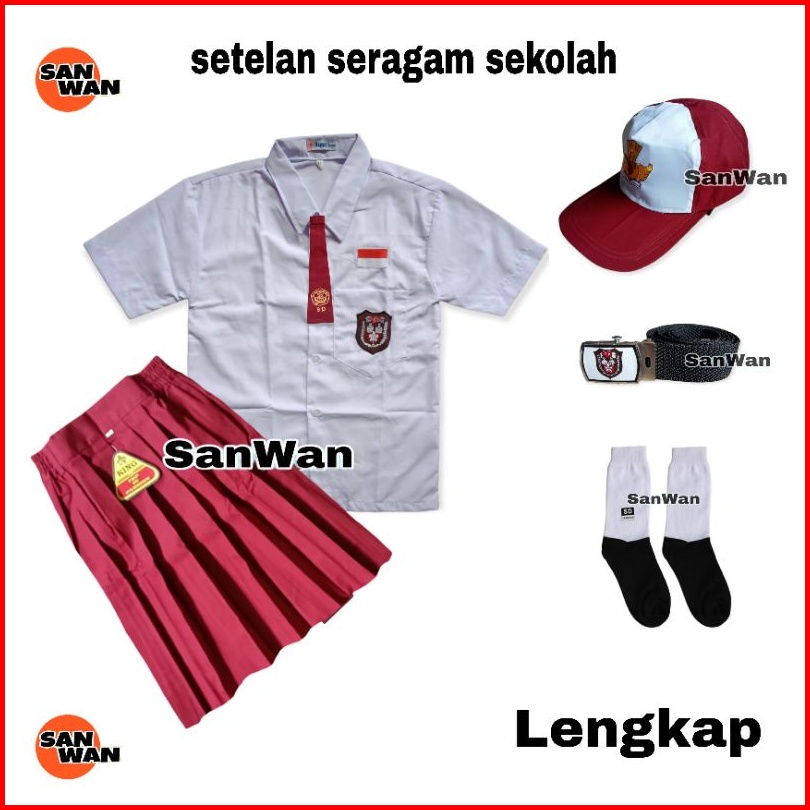 Setelan Seragam Sekolah Sd Perempuan Baju Putih Pendek Rok Merah Pendek Lengkap