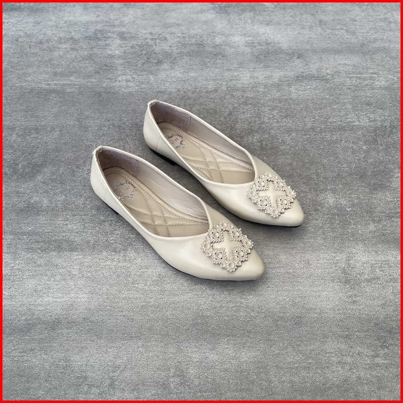 Faduzzi Sepatu Wanita Flat Mizuki Ujung Lancip Decorasi Logam