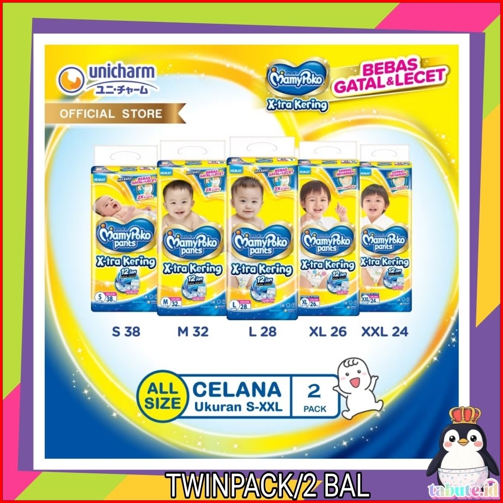 Twinpack 2 Bal Mamypoko Pants Standar X-tra Kering Nb-s44 S38 M32 L28 Xl26 Xxl24 - Tabute.id