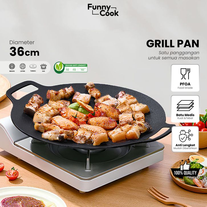 Grill Pan Alat Panggang FUNNYCOOK Alat Panggang BBQ Grill Pan Korean 36CM 38CM Wajan Bulat Anti Lengket Serbaguna