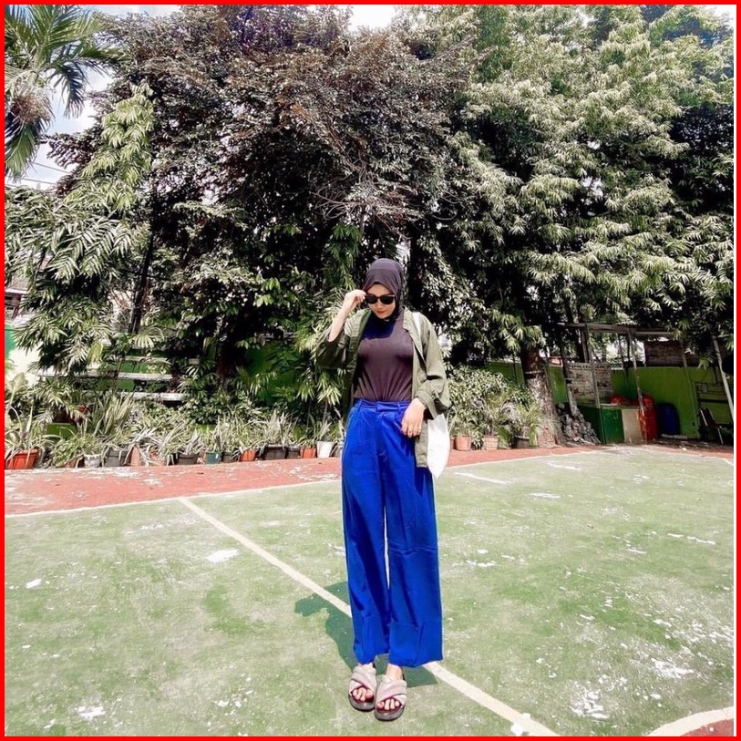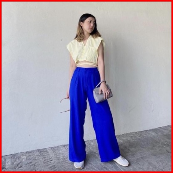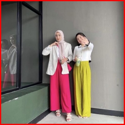 Celana Panjang Wanita Kulot Highwaist Loose Pants Yora Pants Premium Warna Stabilo Terbaru Fuschia