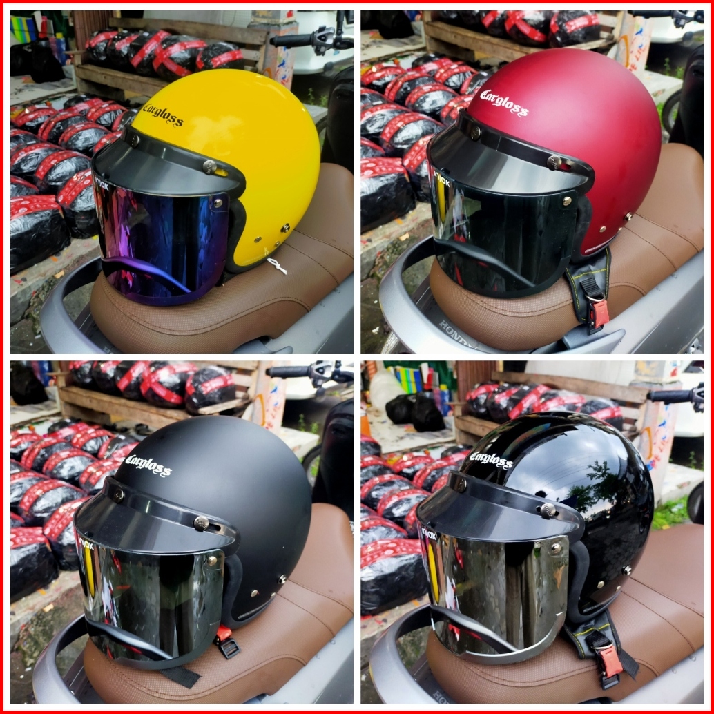 Helm Carglos Bogo Dewasa Retro Full Leher Free Kaca Datar Injak Sni
