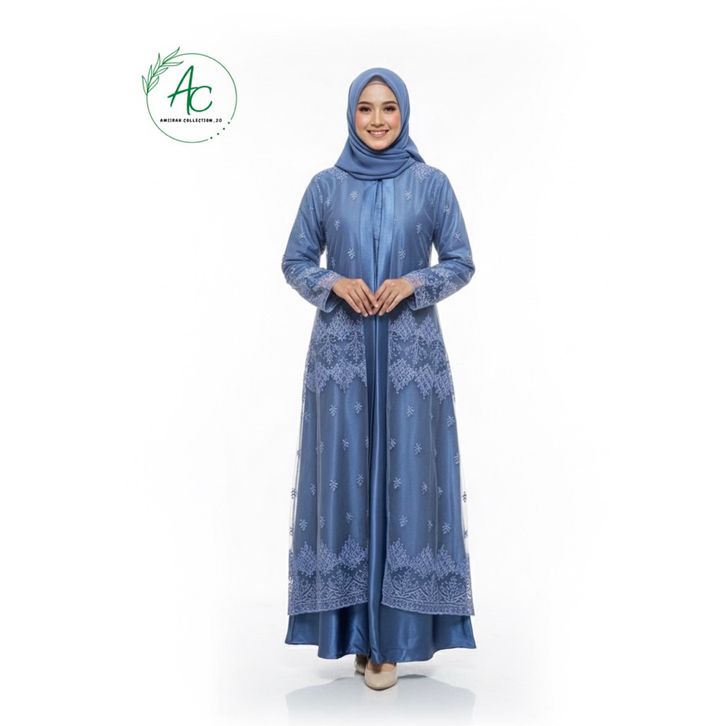 GAMIS DRESS SELENA - SATIN CRYSTAL MIX TILLE BORDIR (REALPICK sesuai foto product )