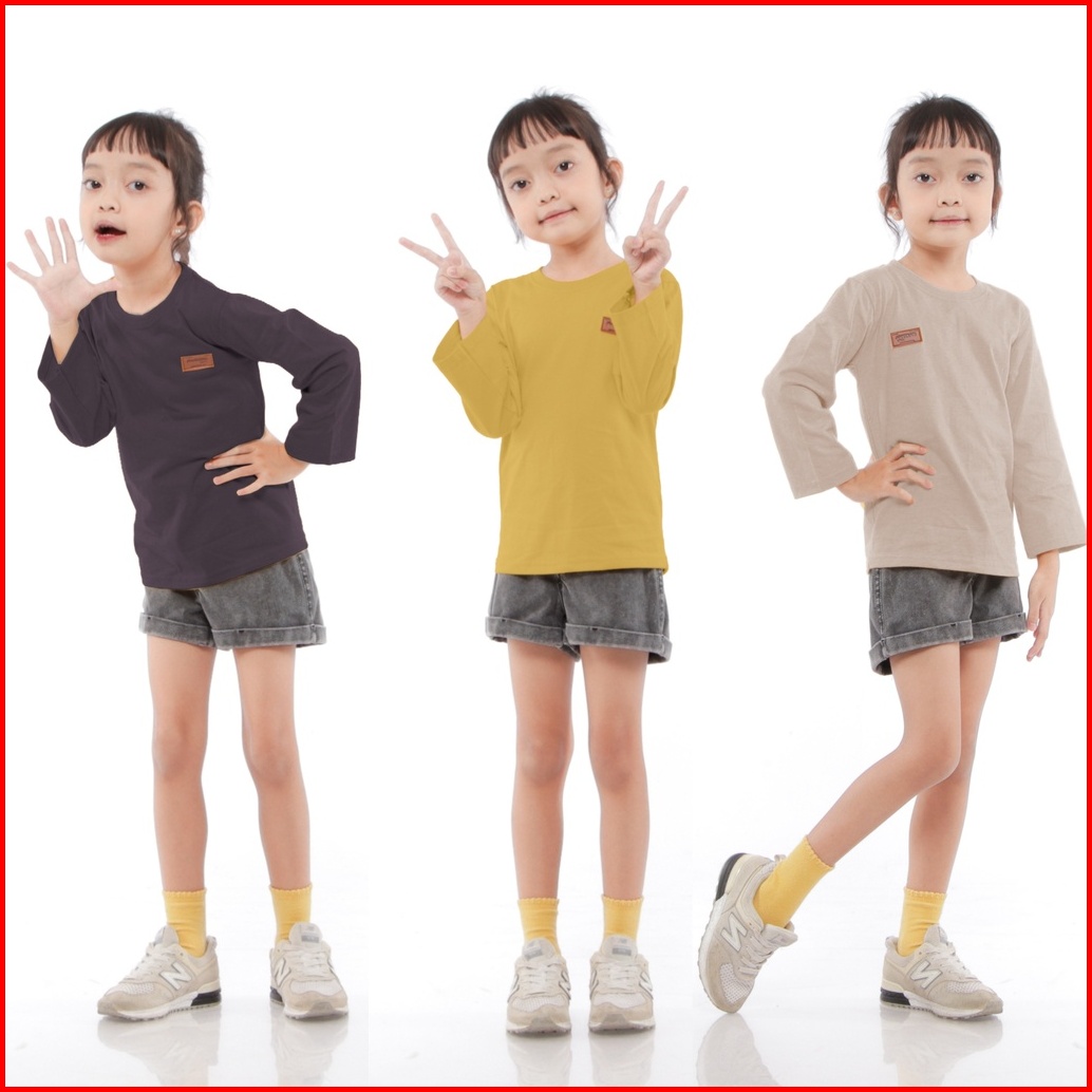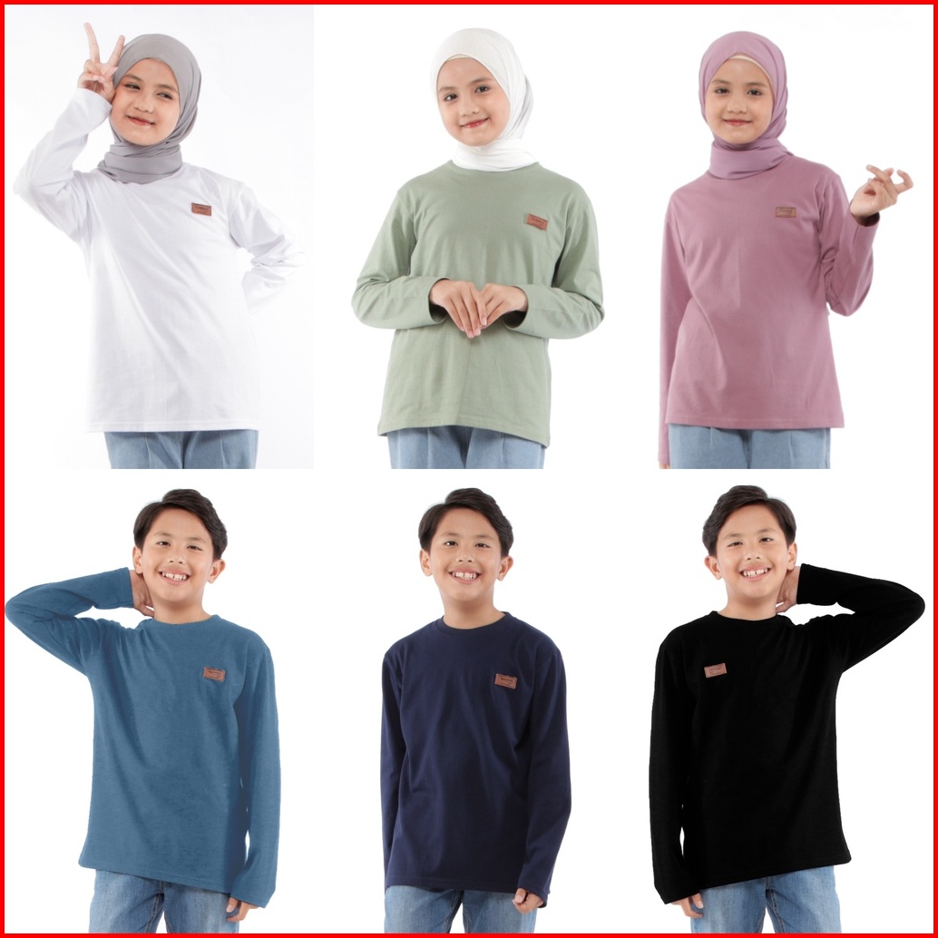 Baju Atasan Blouse Kaos Polos Lengan Panjang Basic Anak Unisex Usia 4 Sampai 14 Tahun