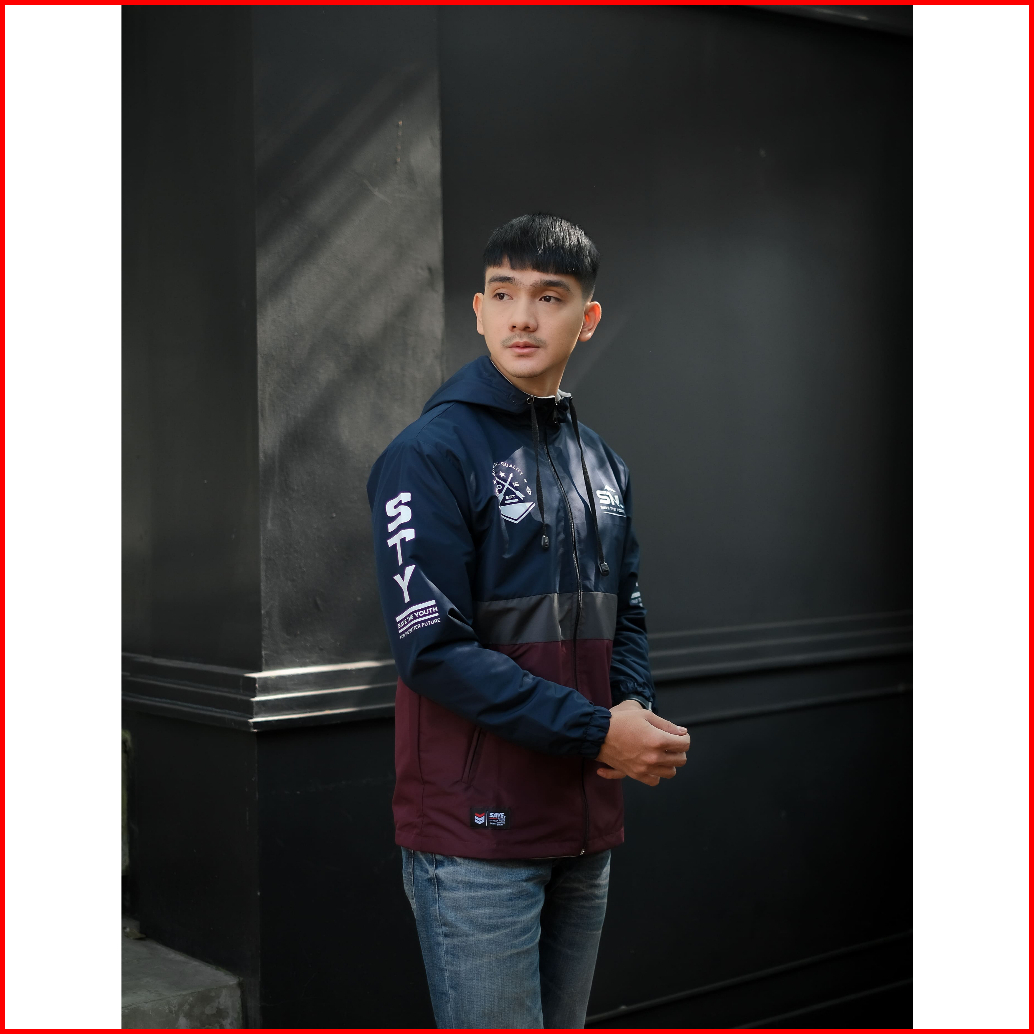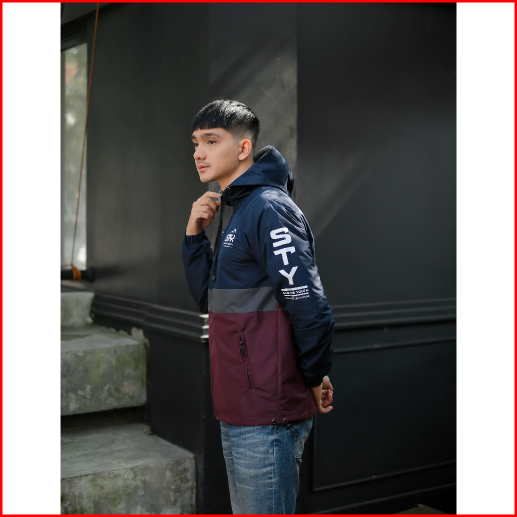 Jaket Parasut Pria Wanita Casual Anti Air Dan Anti Angin Waterproof Windbreaker Navy Save The Youth