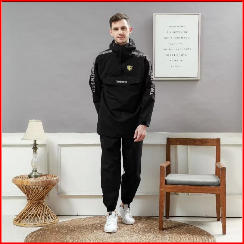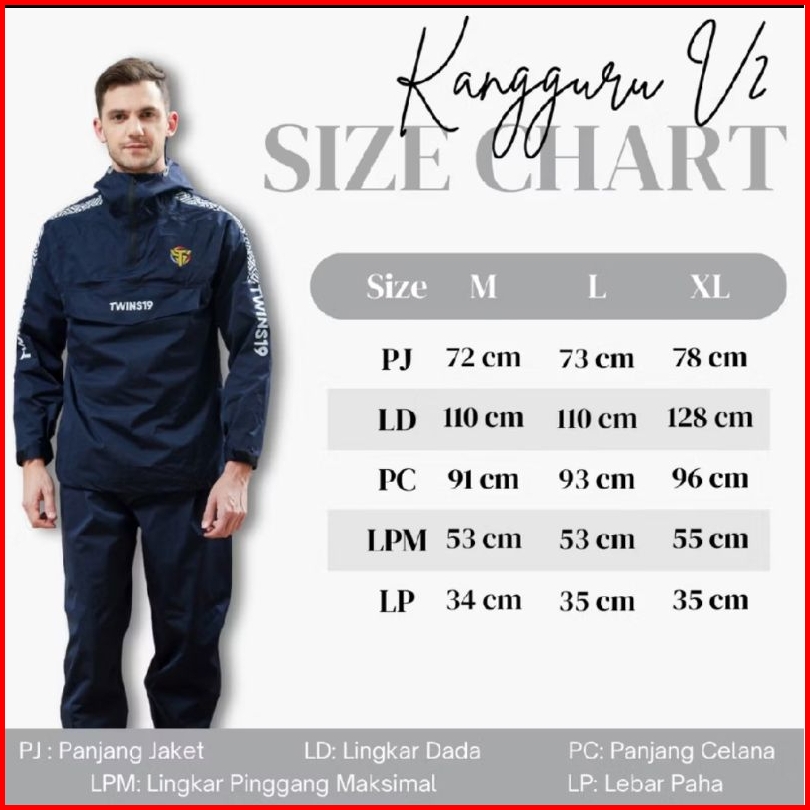 Jas Hujan Pria Wanita Dewasa Anti Air Model Saku Kangguru Twins Nineteen