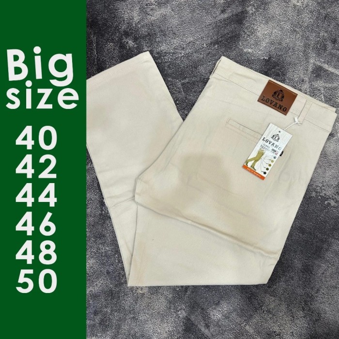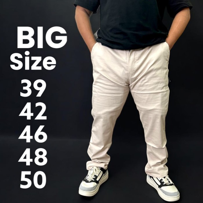 CHINOS JUMBO BIG SIZE STRETCH MELAR CELANA PANJANG PRIA SIZE 39-50 MUAT BB 130KG - CREAM, 42