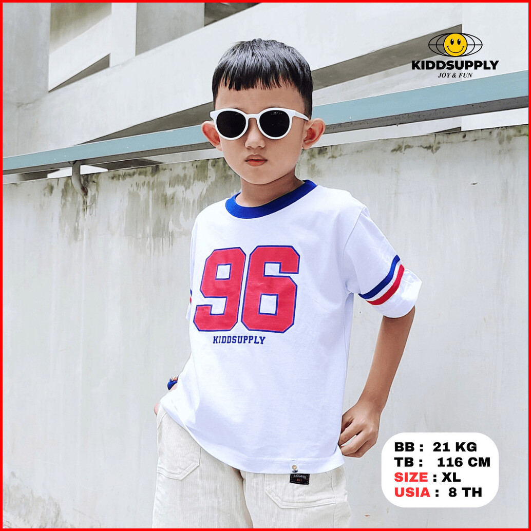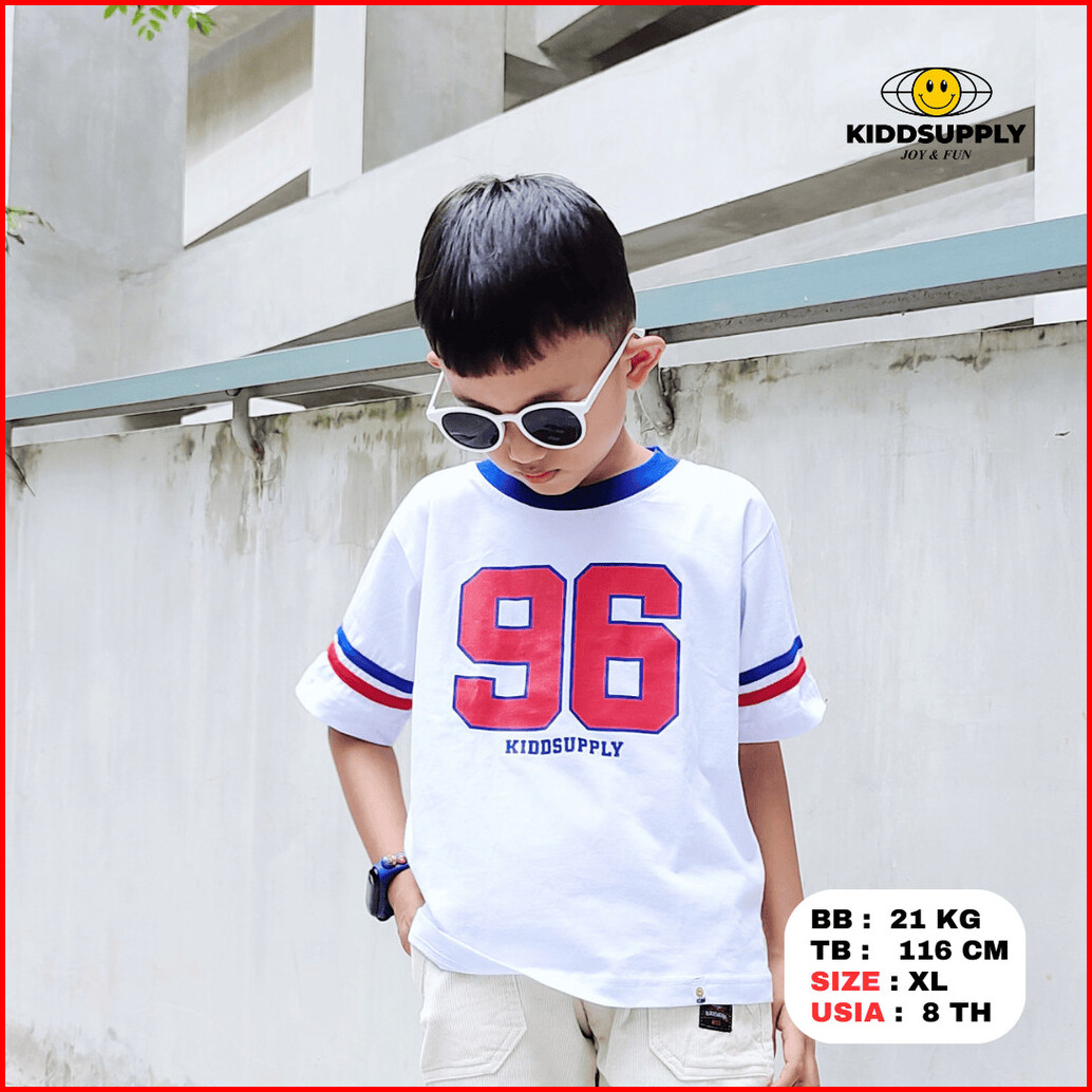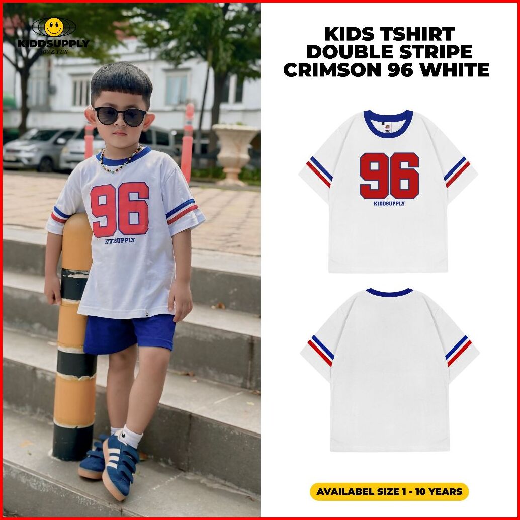 Kiddsupply Kids Tshirt Double Stripe Crimson 96 White L Kaos Regular Anak Unisex Kdtsdsstrip003