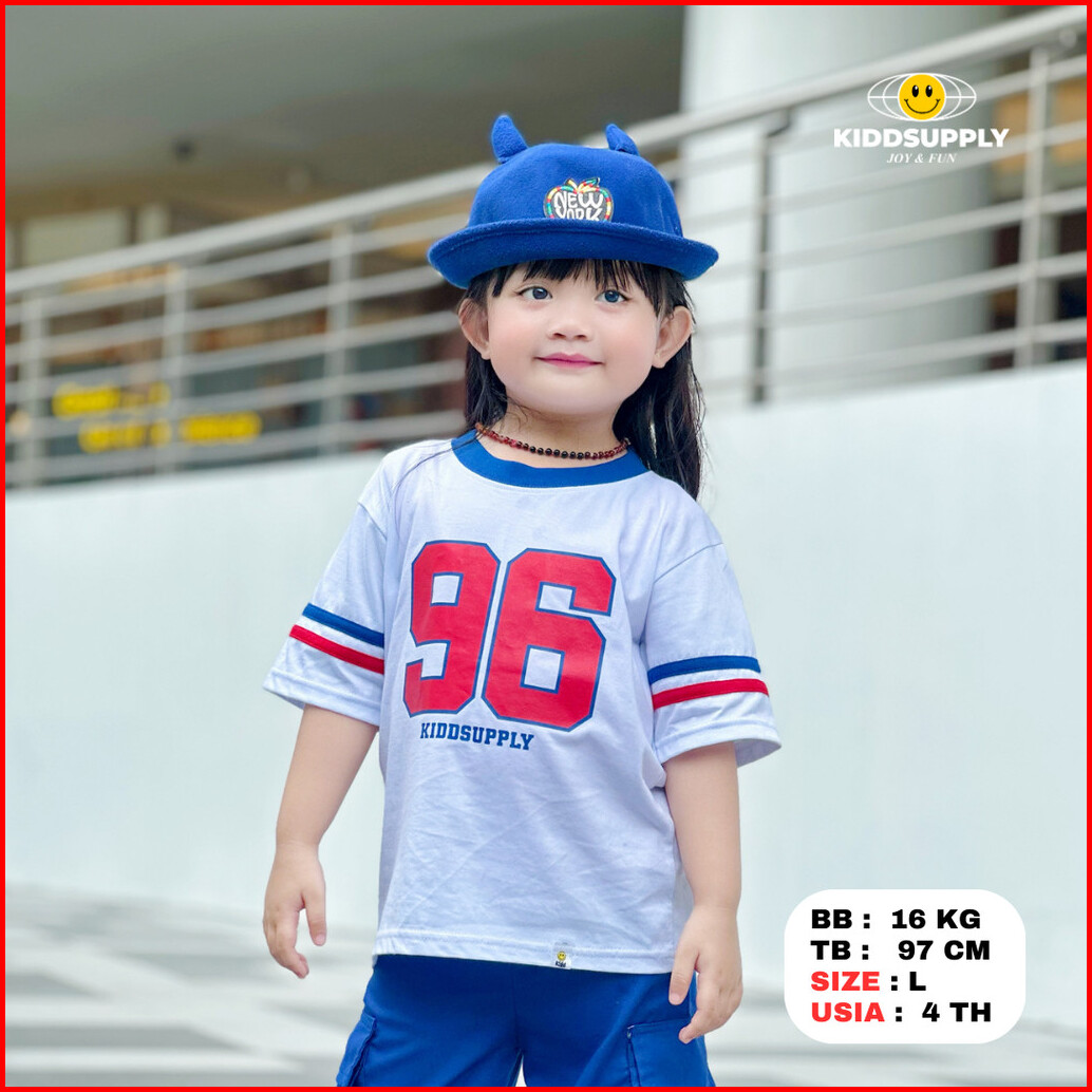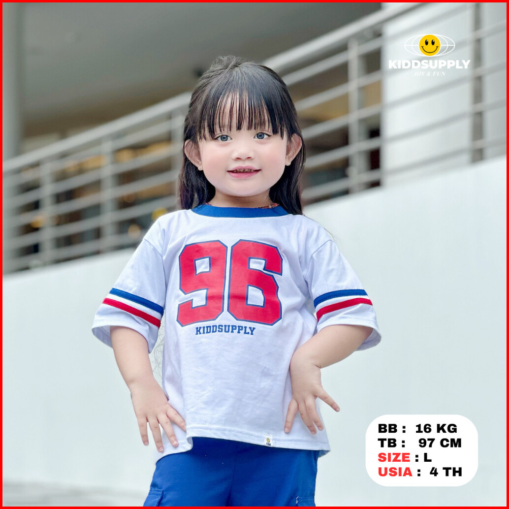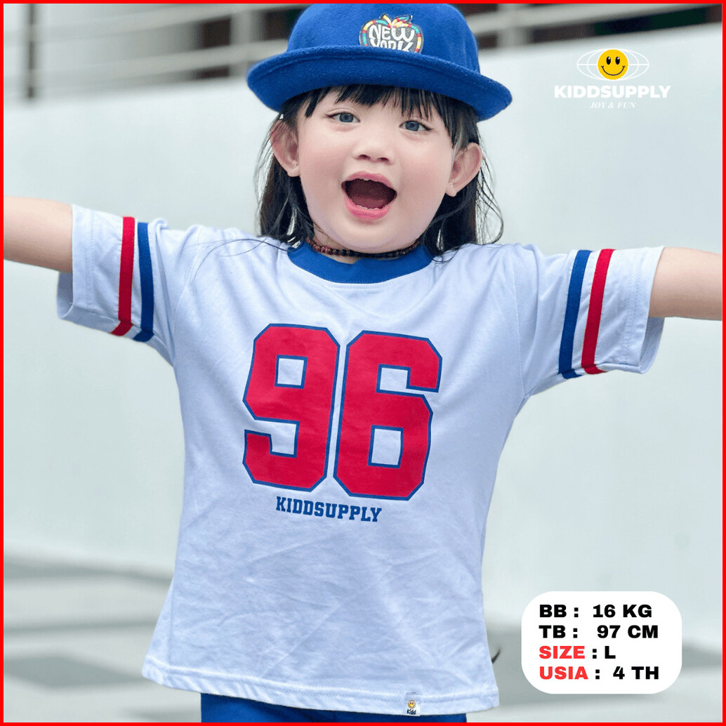Kiddsupply Kids Tshirt Double Stripe Crimson 96 White L Kaos Regular Anak Unisex Kdtsdsstrip003