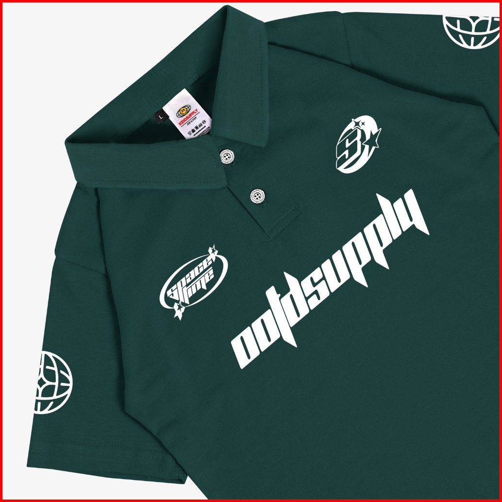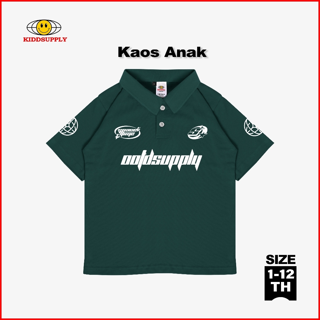 Kiddsupply Kids Polo Shirt Space Time Dark Army L Kaos Anak Unisex Tspkd005