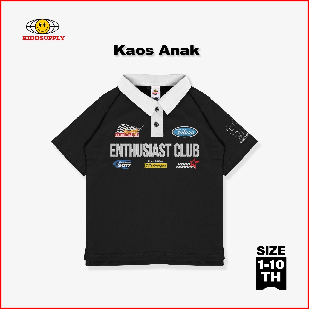 Kiddsupply Kids Polo Shirt Runner White Collar L Kaos Anak Unisex Pwckd007