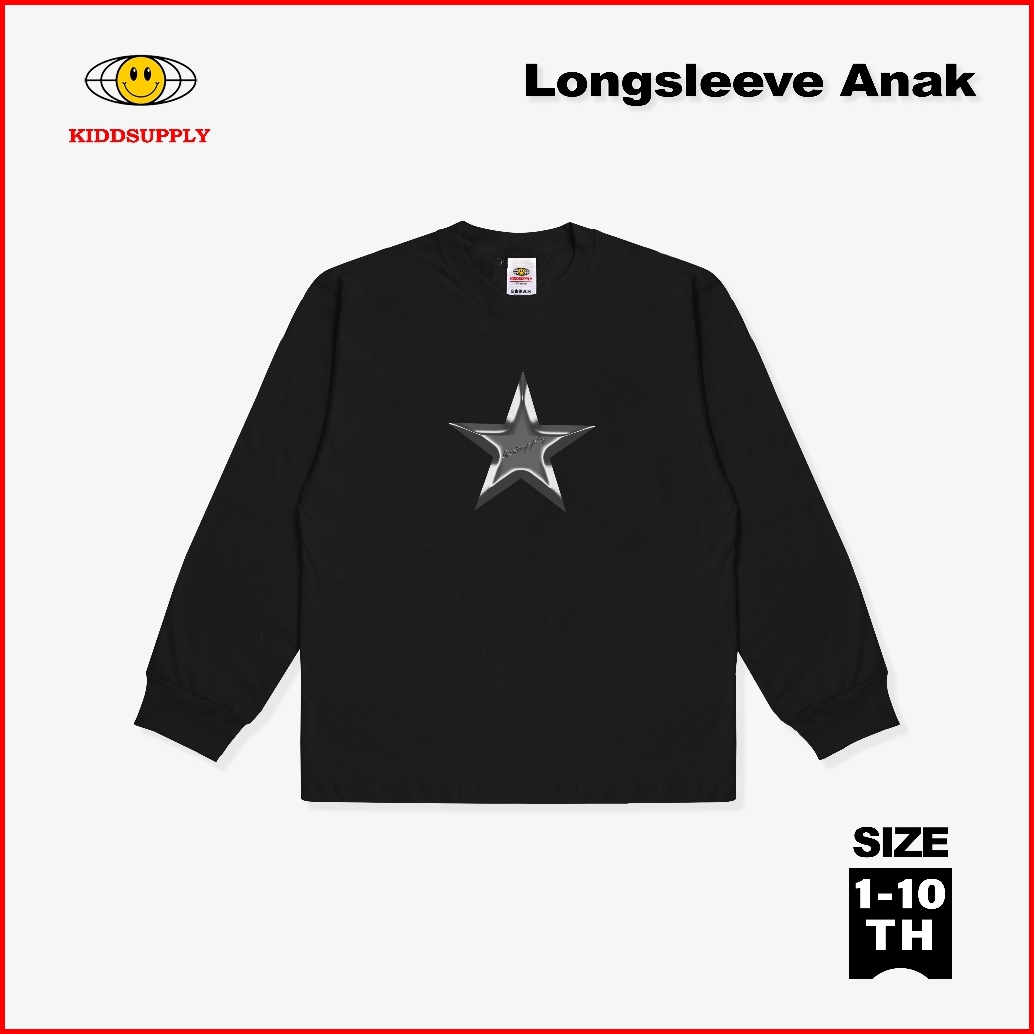 Kiddsupply Kaos Lengan Panjang Anak Lyra Star Black Atasan Anak Baju Anak Unisex Kdls004
