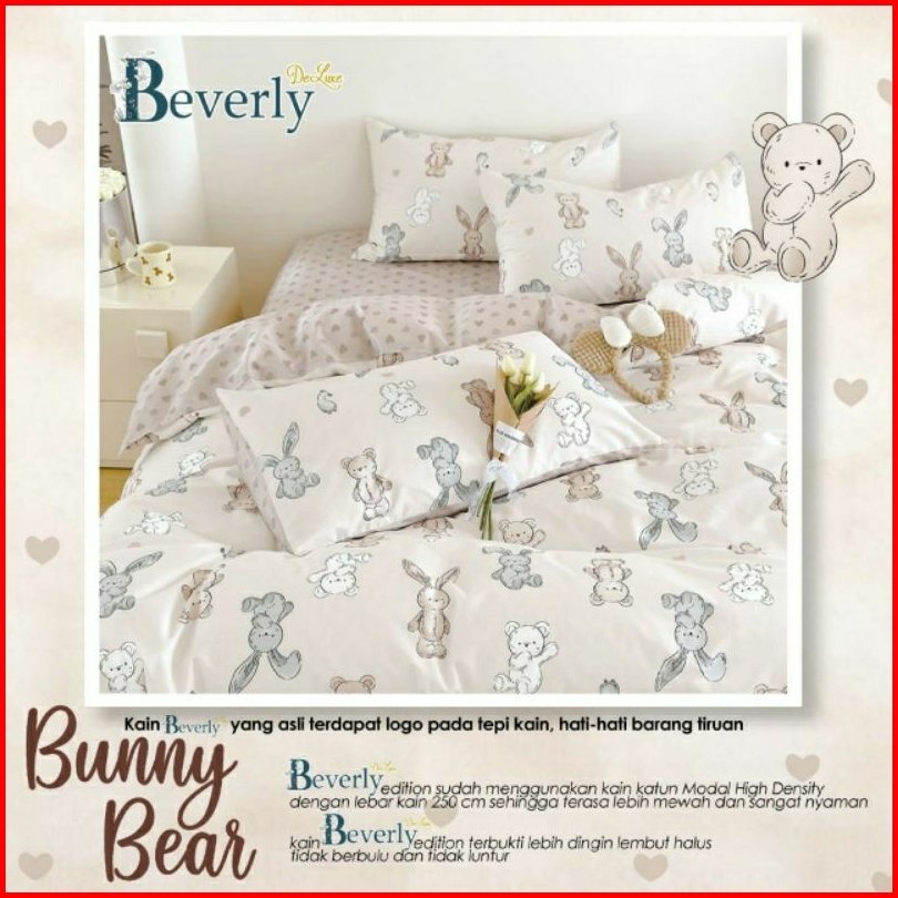 Sprei Anti Geser Katun Beverly Full Motif Bunny Bear