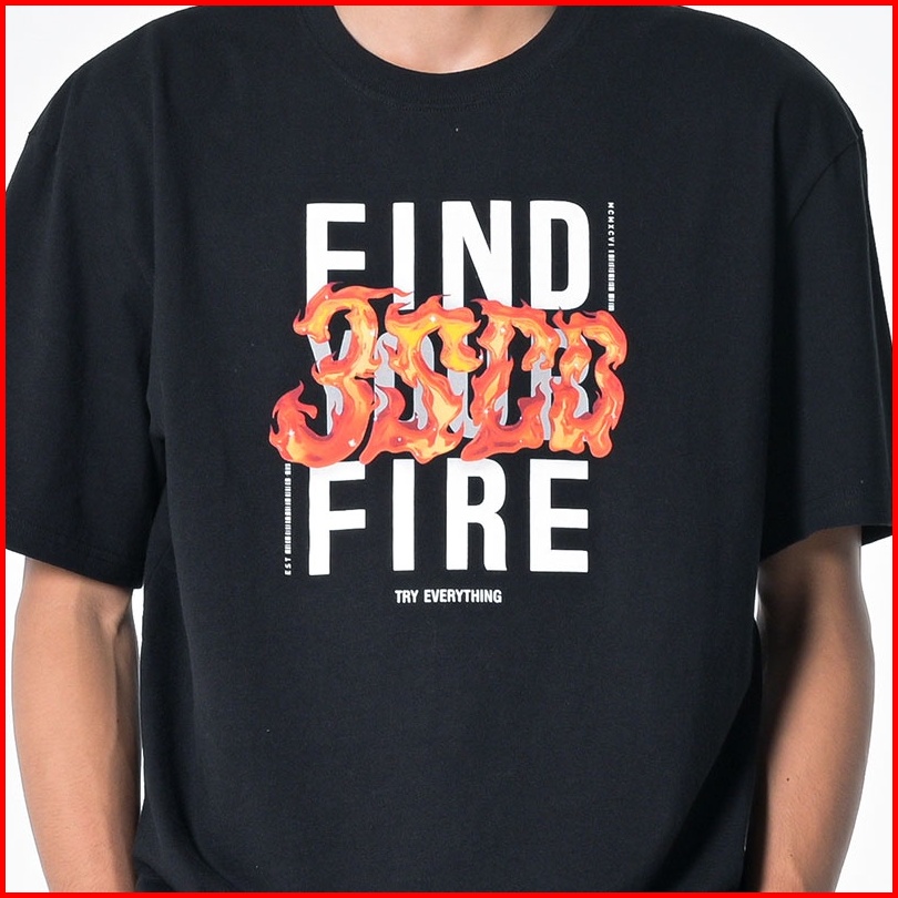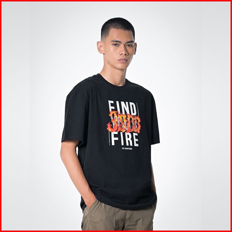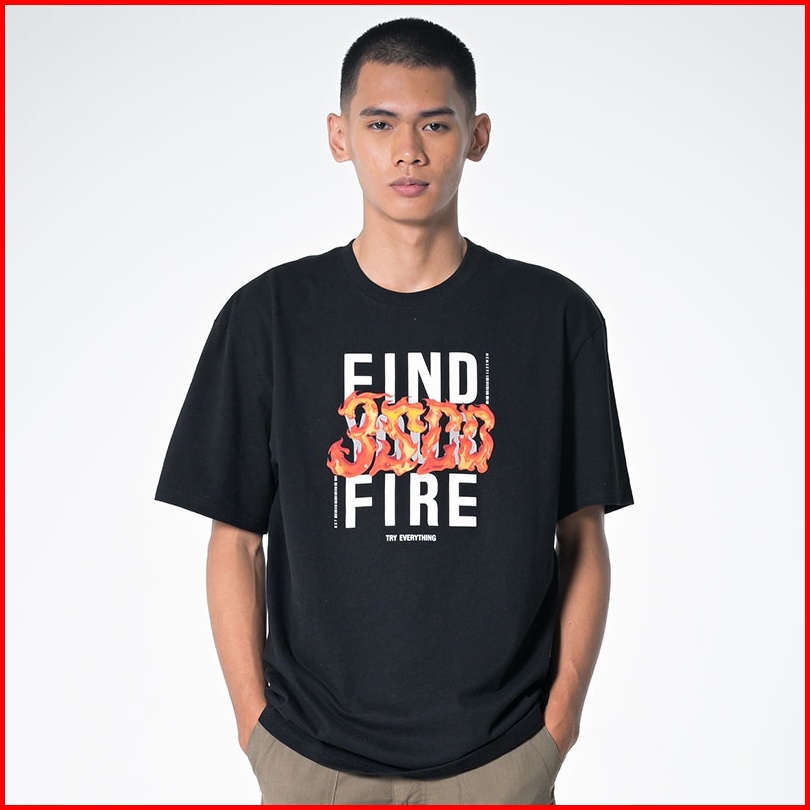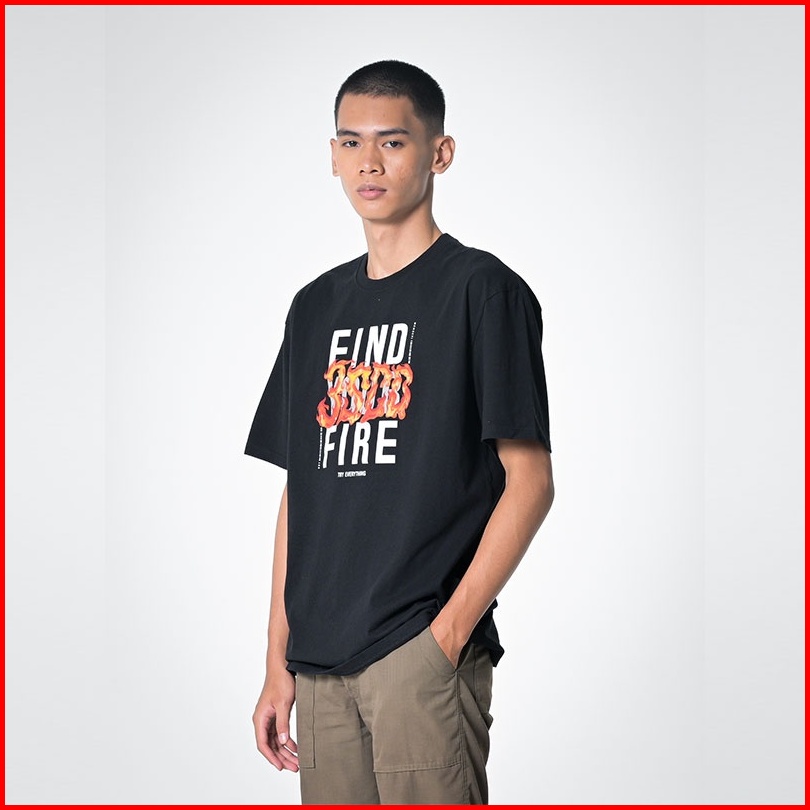 3second Basic T Shirt Kaos Lengan Pendek Desain Find Your Fire Pria Bahan Katun Hitam 470323