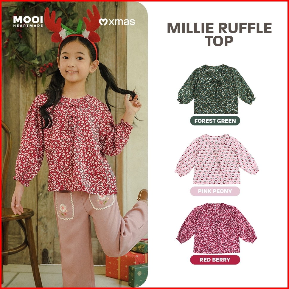 Mooi Atasan Anak Perempuan Christmas Collection Millie Ruffle Top