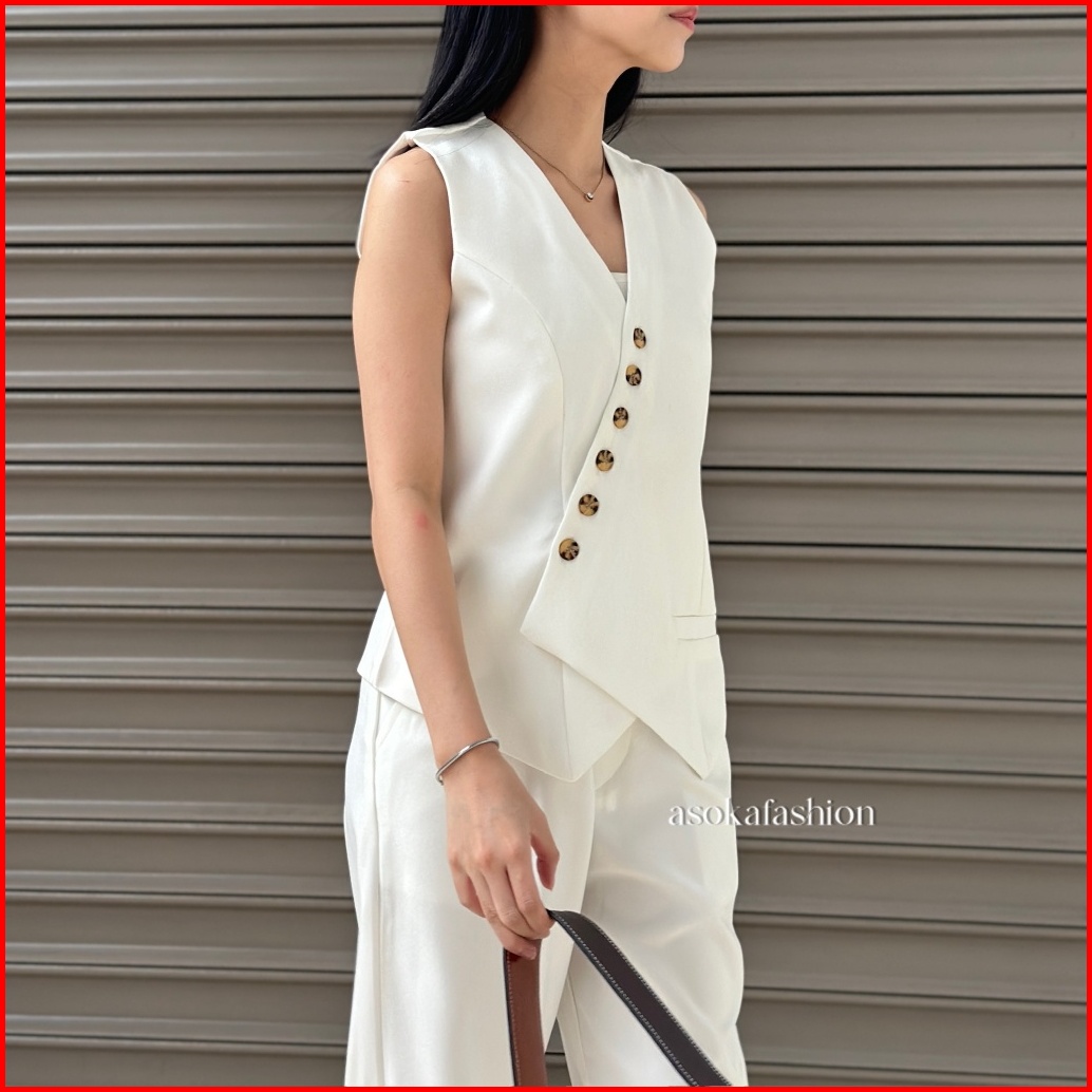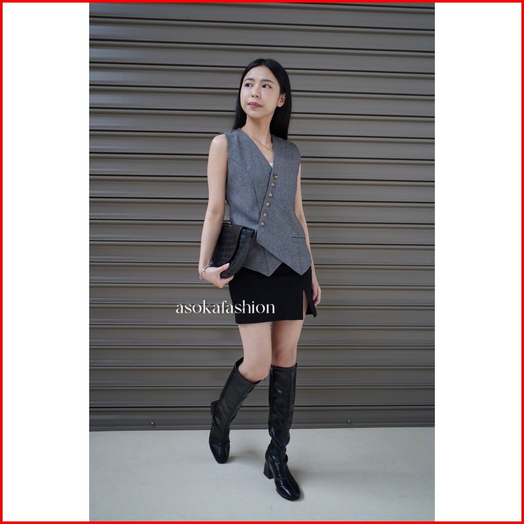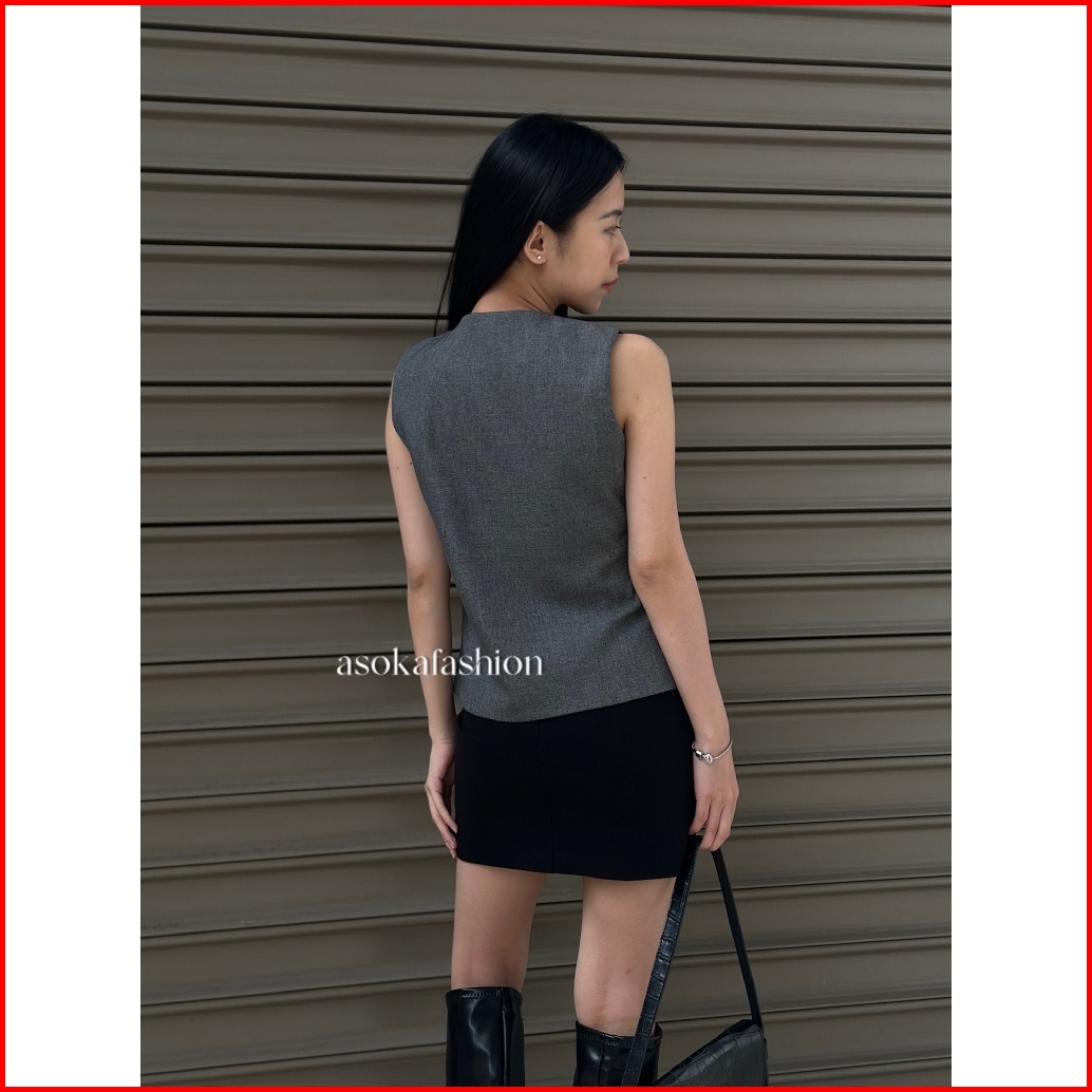 Asoka Yuzu Vest 720 - Sleeveless Korean V-neck Fit Vest - Atasan Wanita Asimetris Rompi Casual