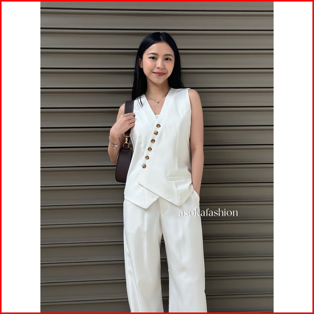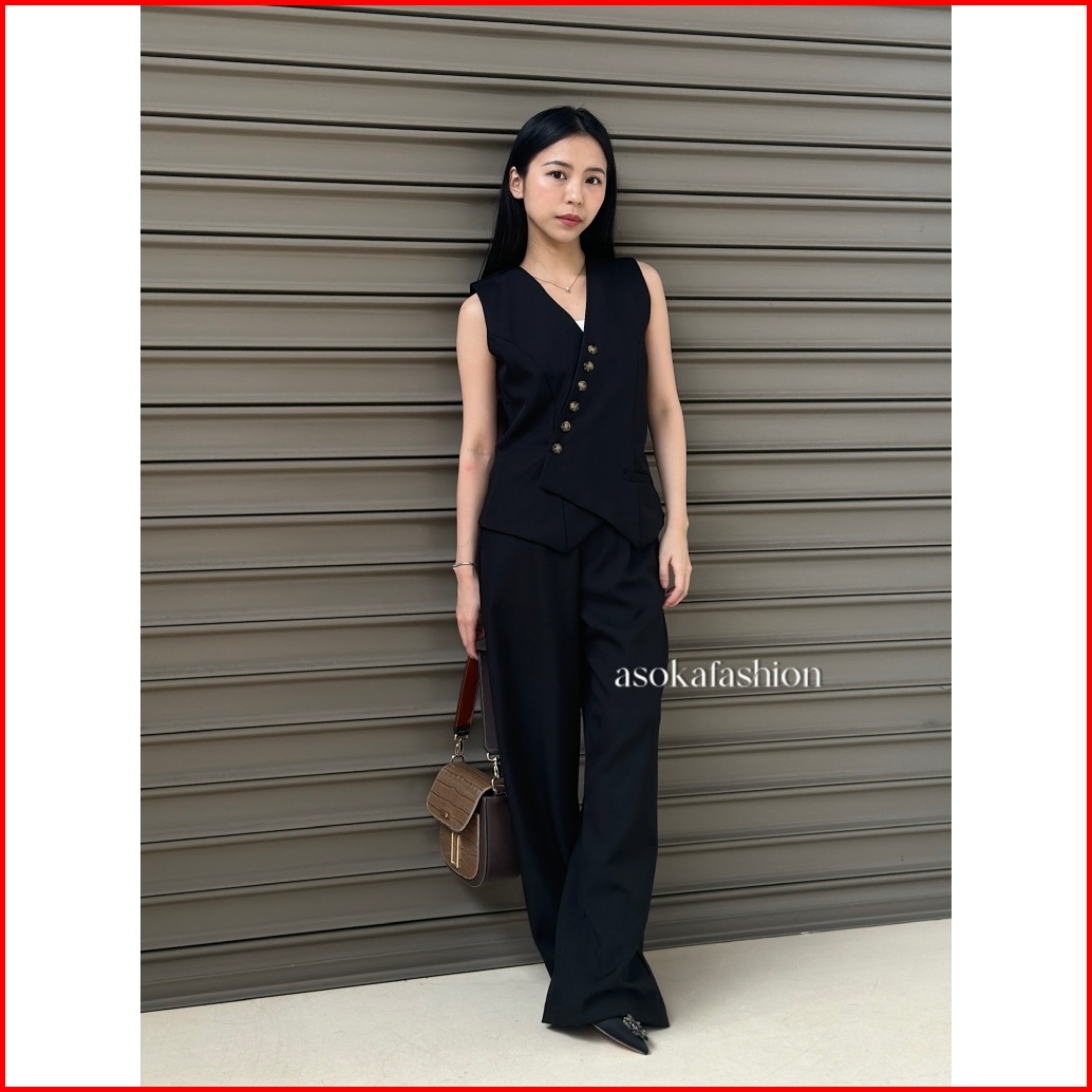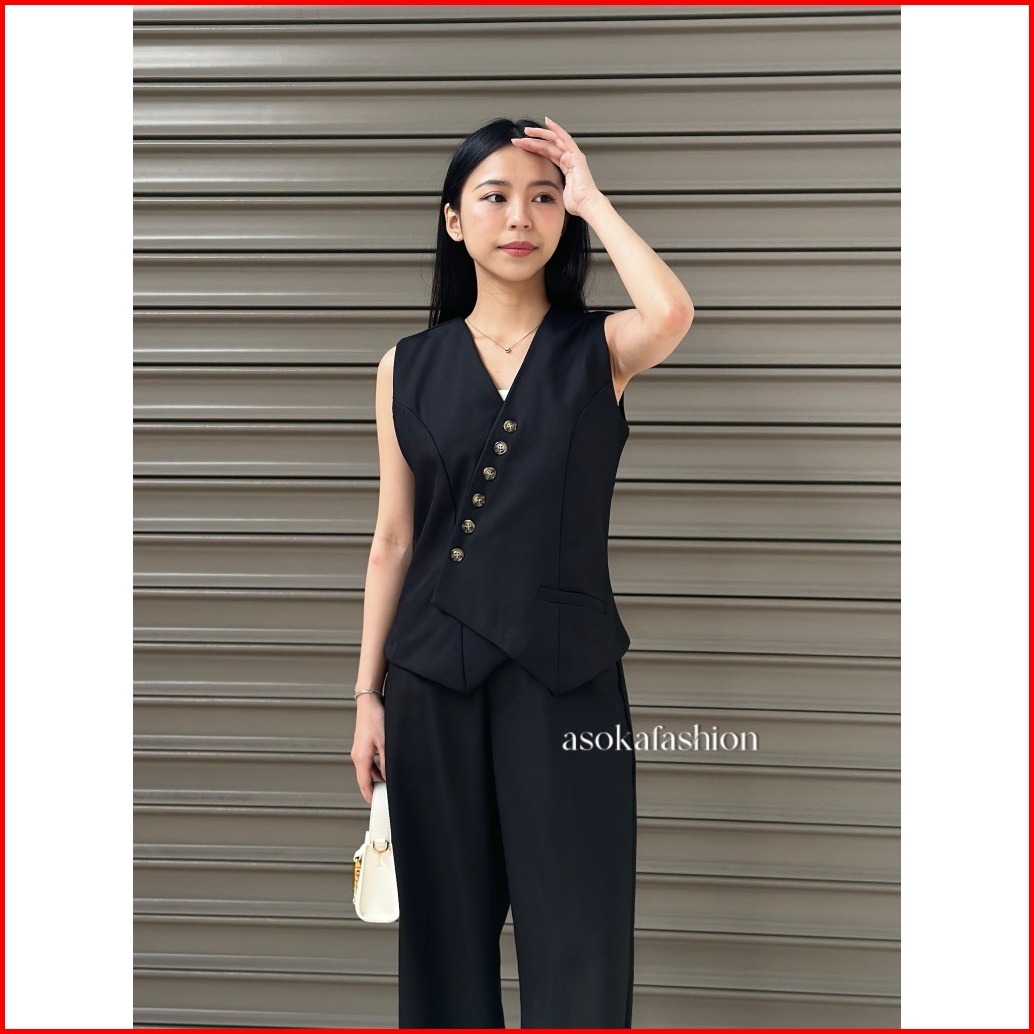 Asoka Yuzu Vest 720 - Sleeveless Korean V-neck Fit Vest - Atasan Wanita Asimetris Rompi Casual