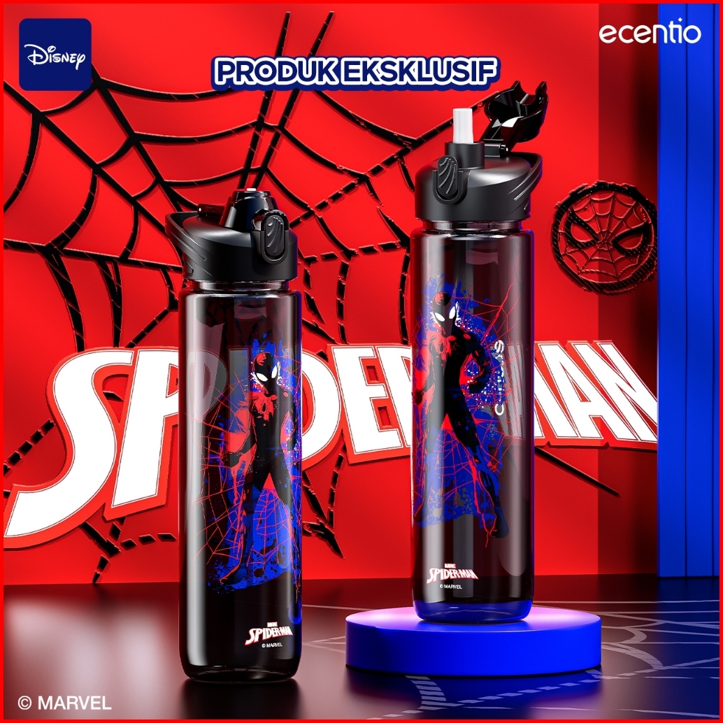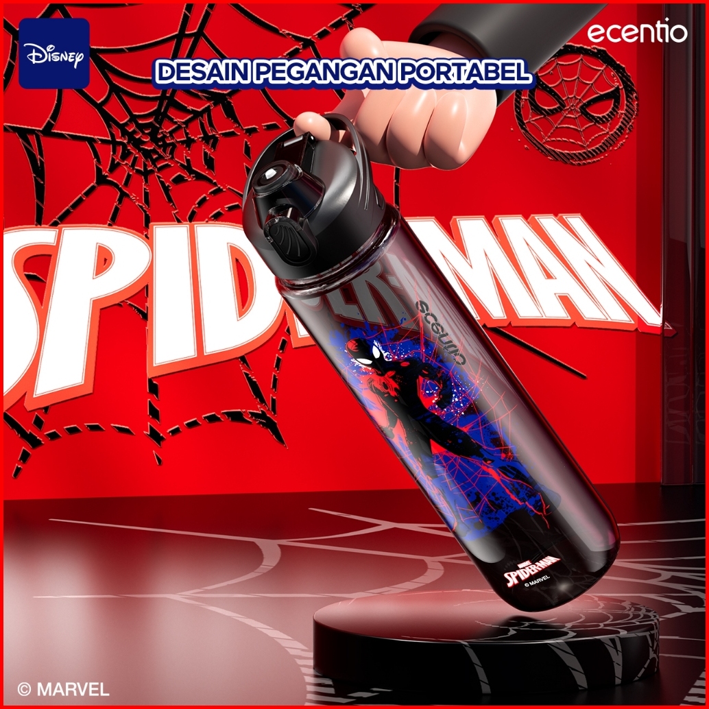 Grosirdisneyecentio 1000ml Spiderman Plastic Botol Minum Anak Portabel Hitam Disney Series Tumbler Minum Aesthetic Anti
