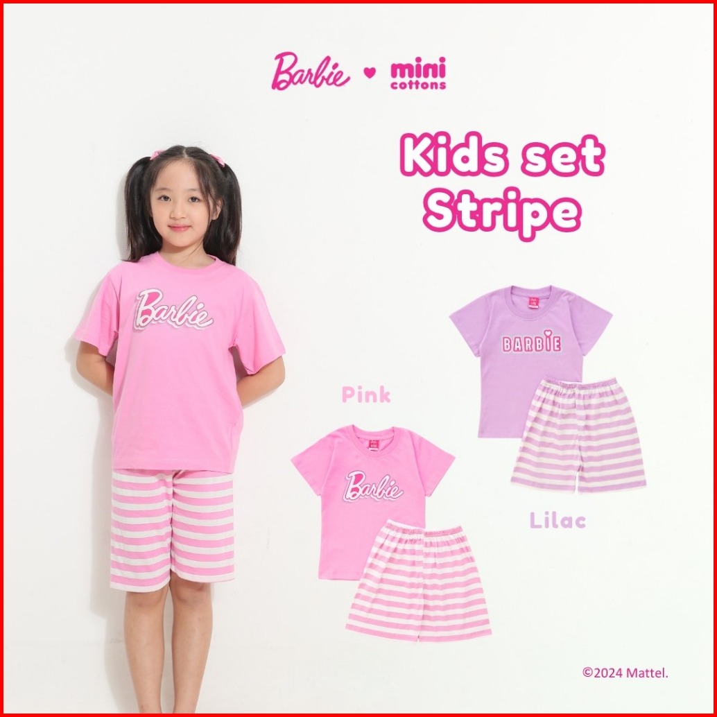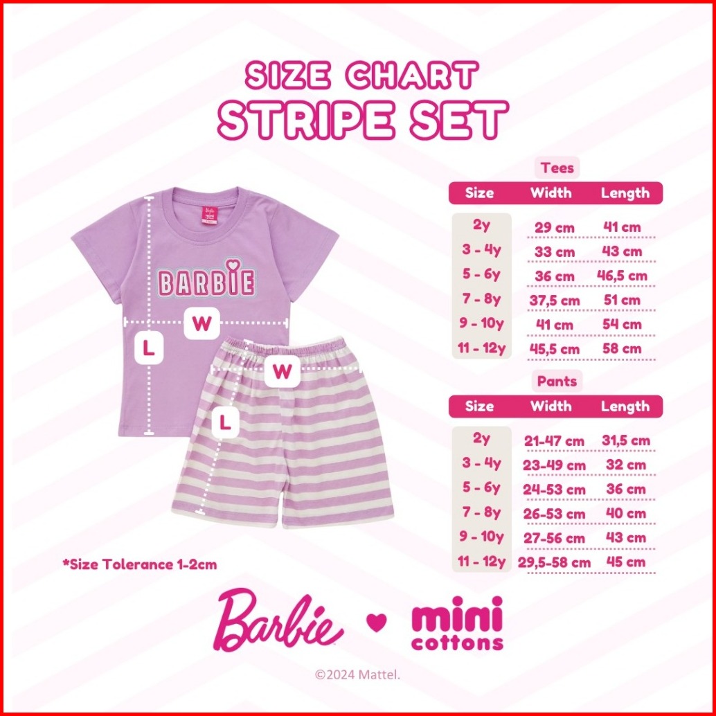 Barbie X Minicottons Kids Set Stripe Setelan Salur Anak Perempuan 2-12 Tahun