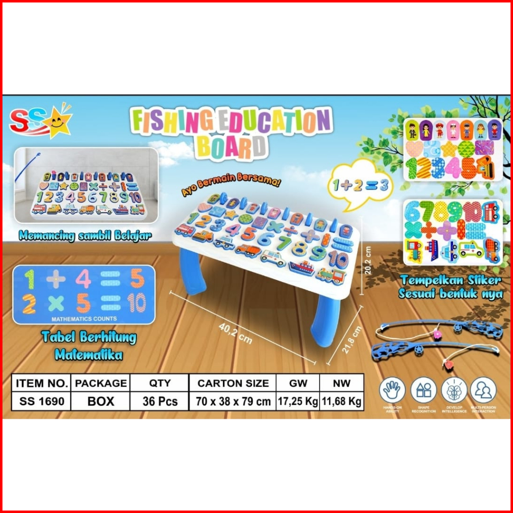Smile - Mainan Edukasi Anak Meja Belajar Menghitung 1690 - Mainan Anak Meja Puzzle - Fishing Education Board