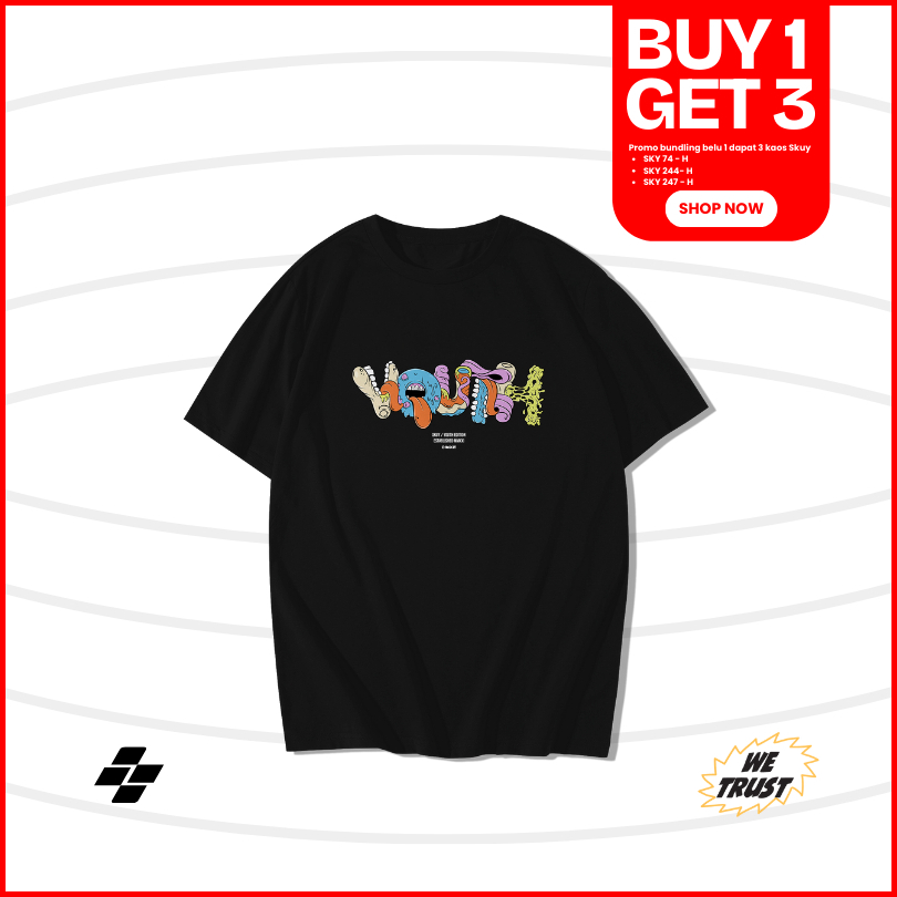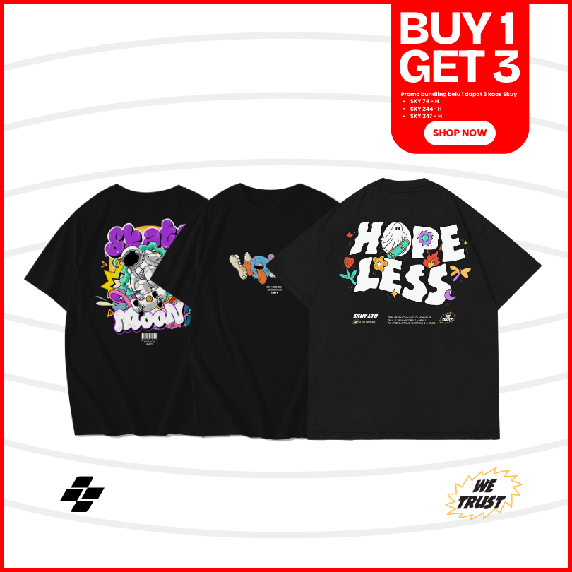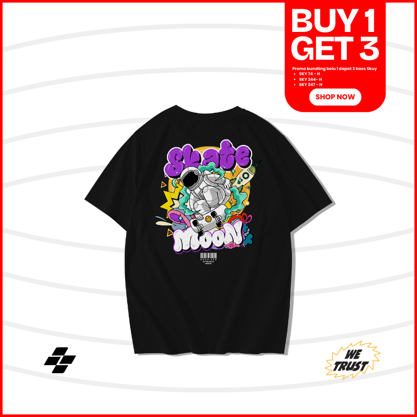 Skuy Buy 1 Get 3 - Kaos Skuy Dewasa Lengan Pendek Baju Pria Bahan Cotton Combed 24s Kerah Bulat Skate Moon Sky74 Youth S