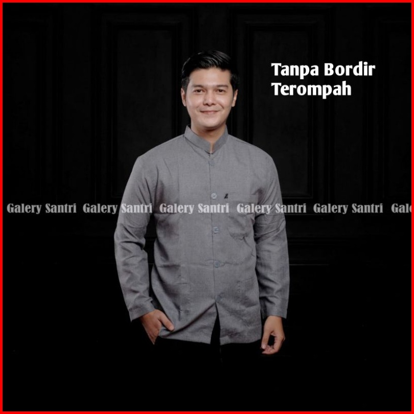 Baju Koko Haibah Habaib Polos Katun Madinah Premium Kancing Besar