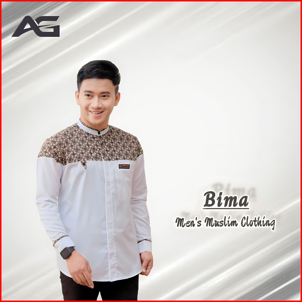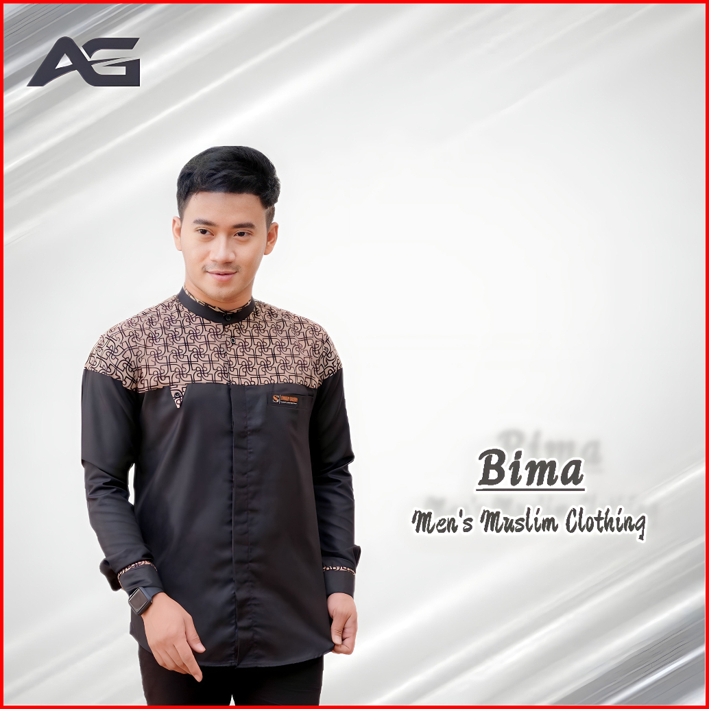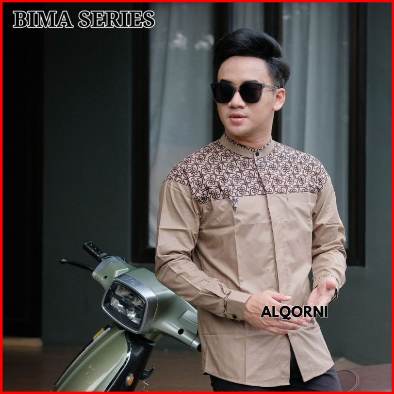 Baju Muslim Pria Dewasa Koko Laki-laki Lengan Panjang Kombinasi Batik Modern Bahan Katun Premium