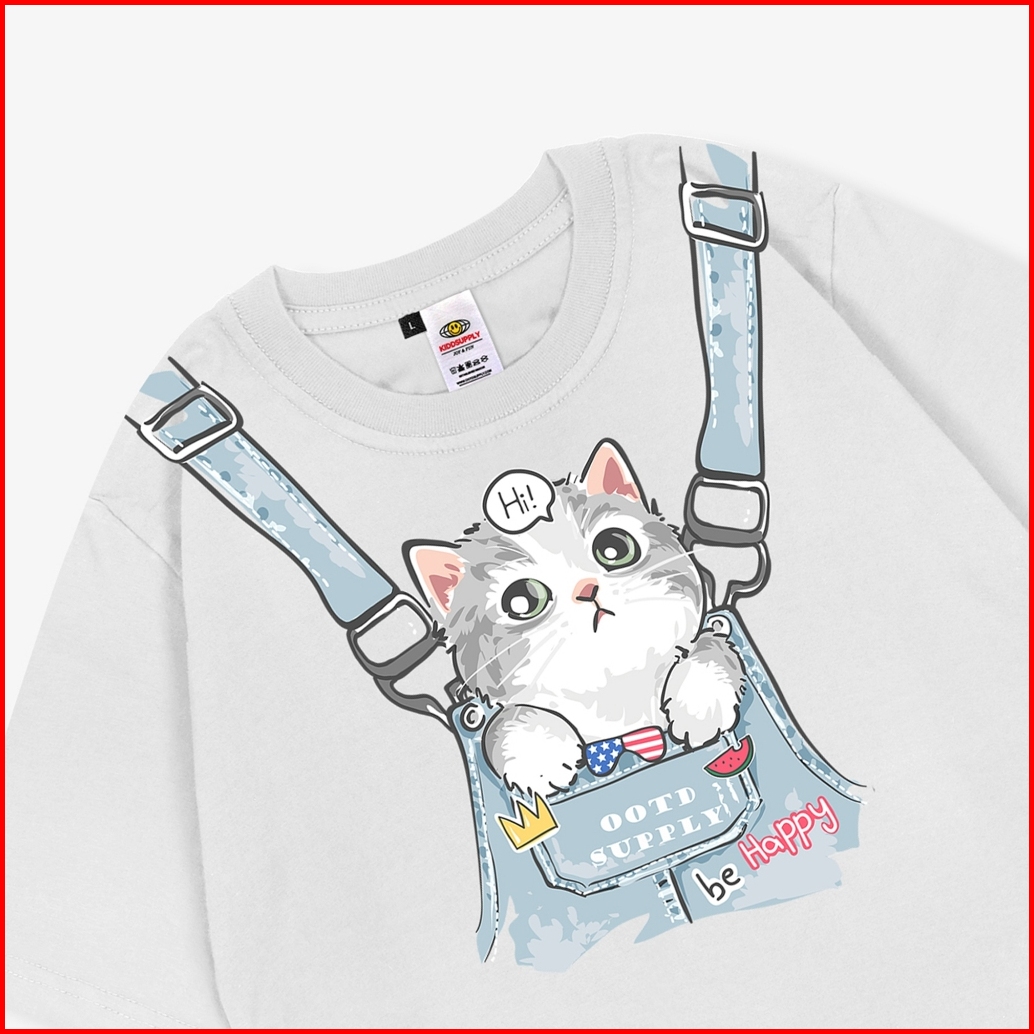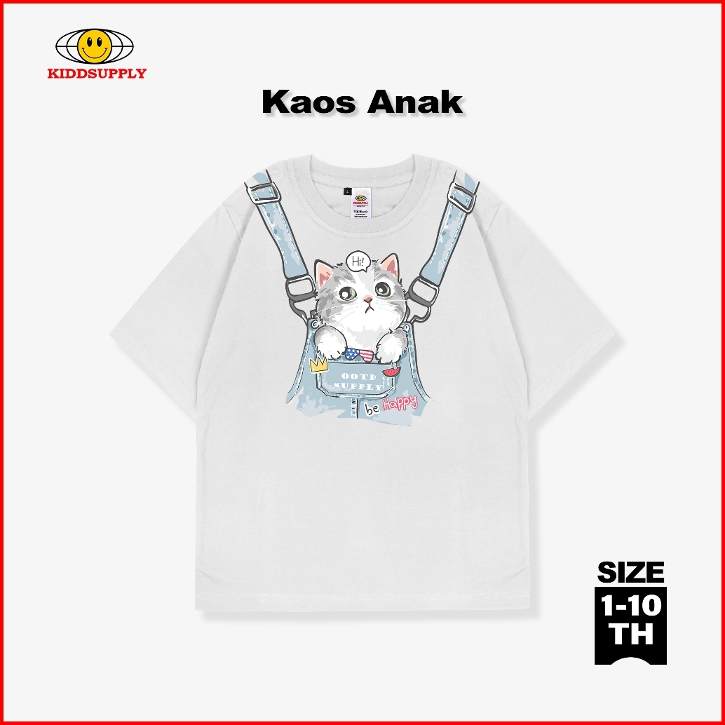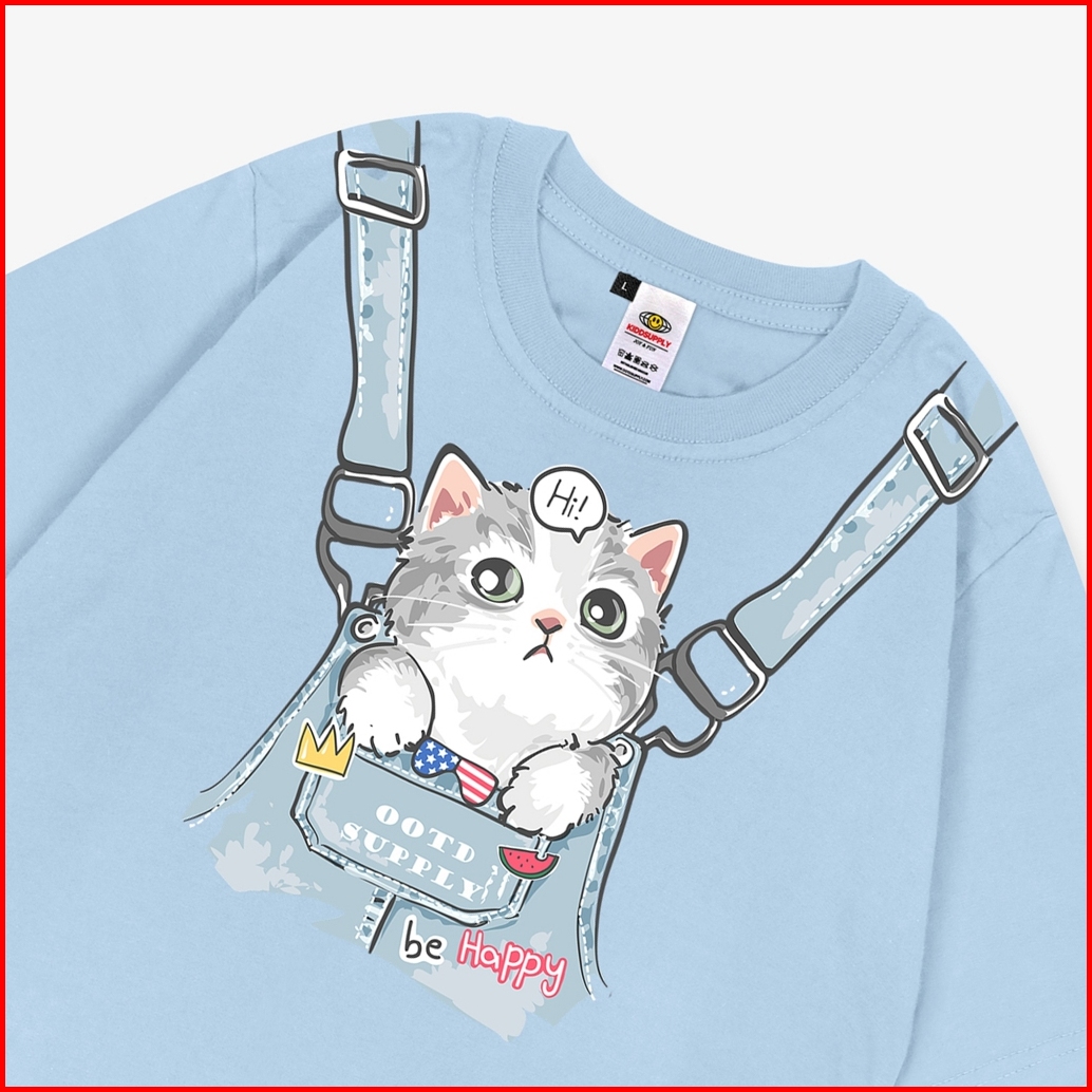 Kiddsupply Kids Tshirt Fortune Cat Baby Blue White L Kaos Anak Unisex Tskd028