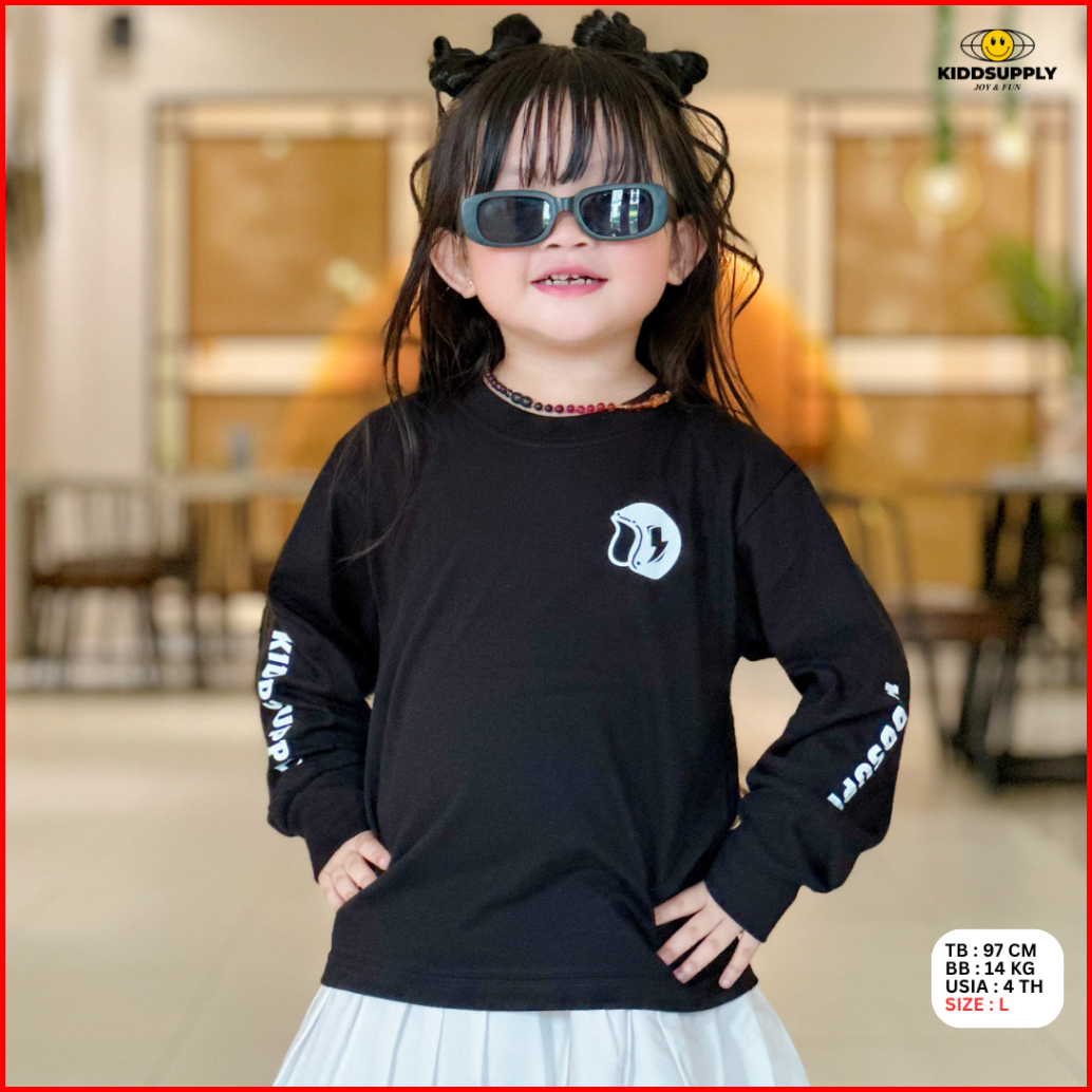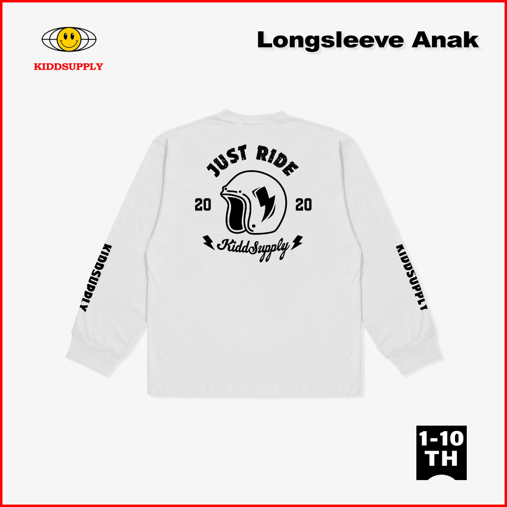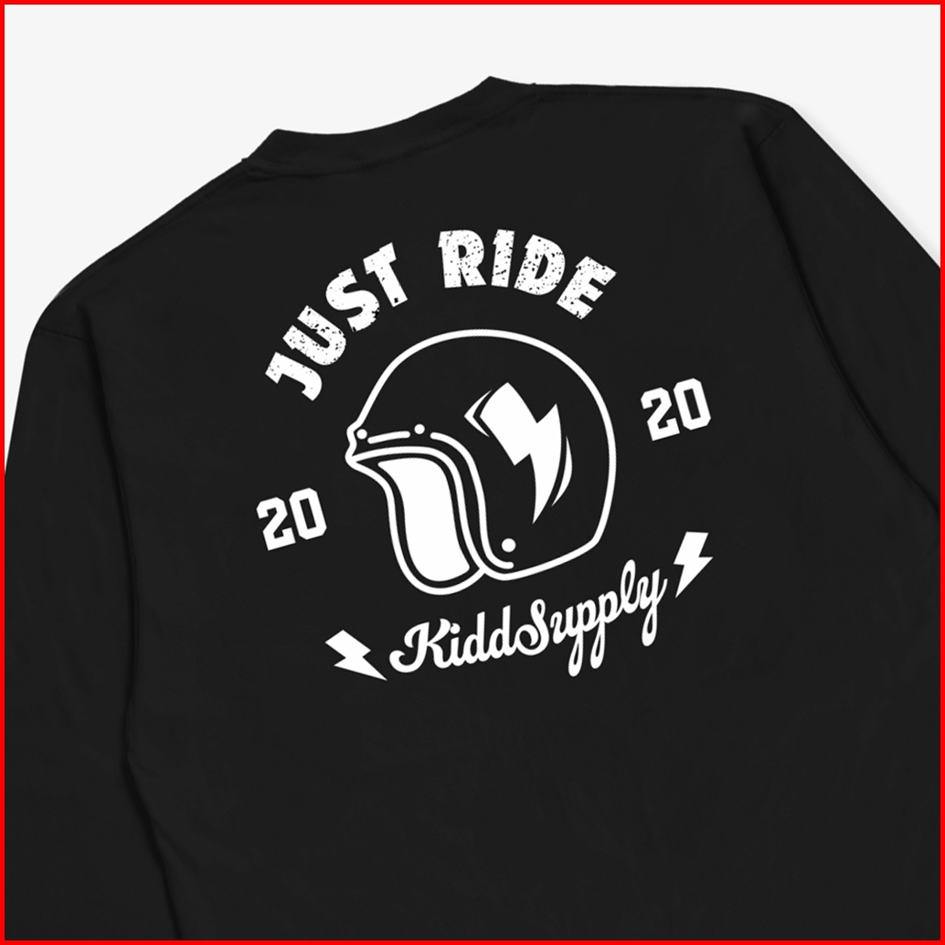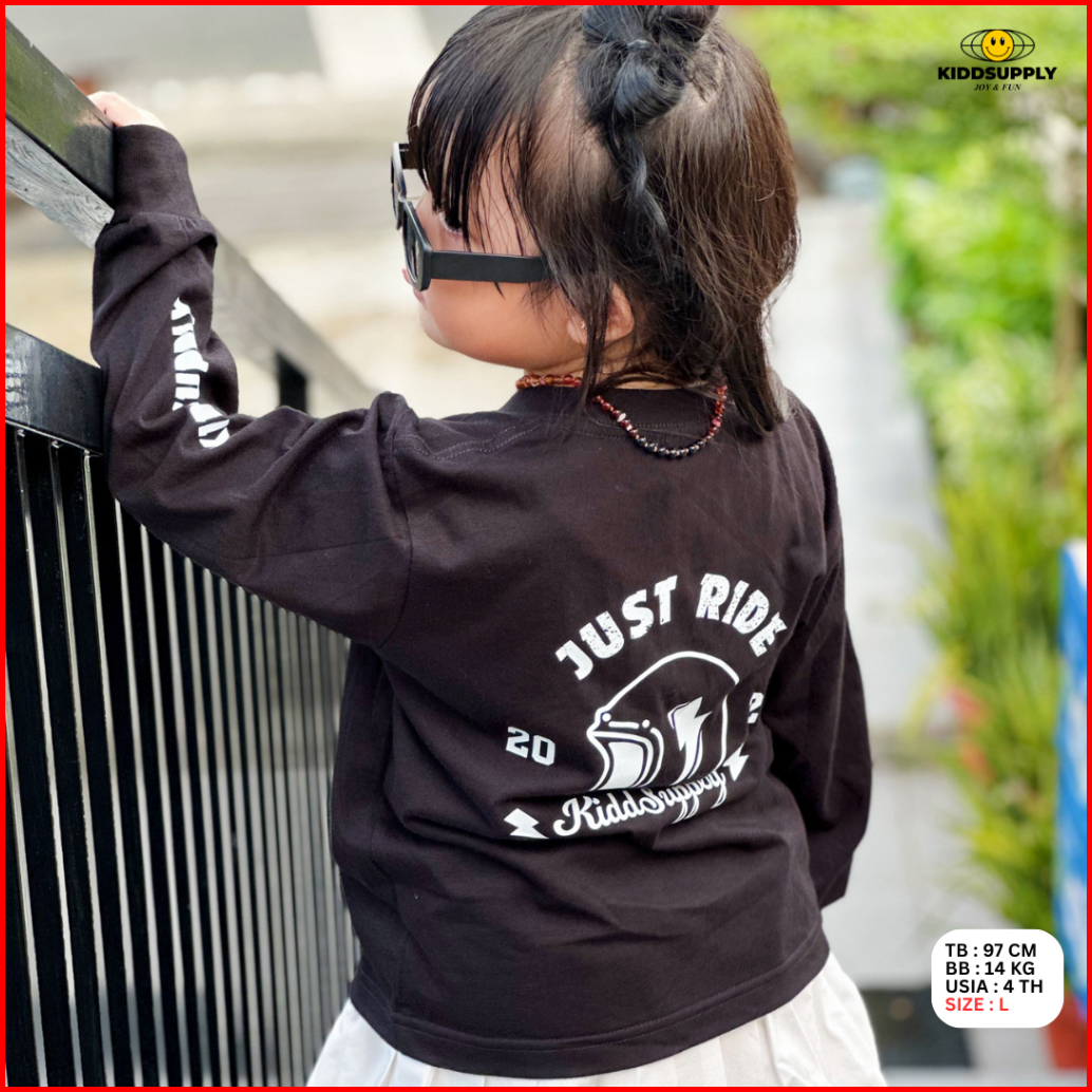 Kiddsupply Kaos Lengan Panjang Anak Just Ride Black White Atasan Anak Baju Anak Unisex Kdls009