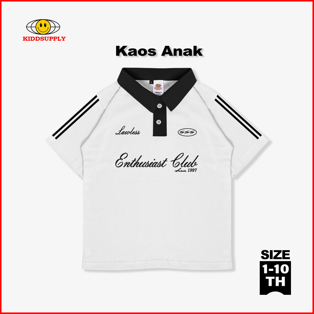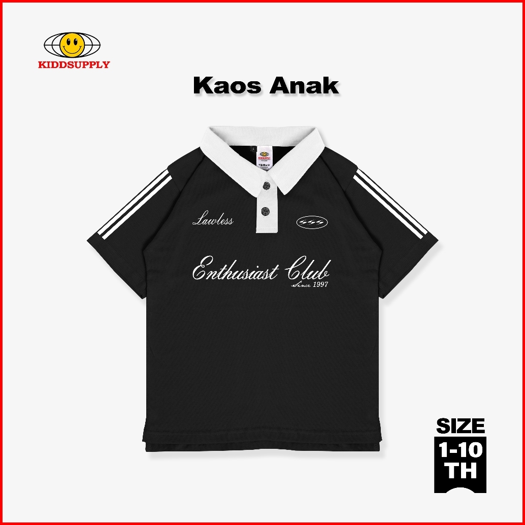 Kiddsupply Kids Polo Shirt Enthusiast Club White Collar Black Collar L Kaos Anak Unisex Pwckd002