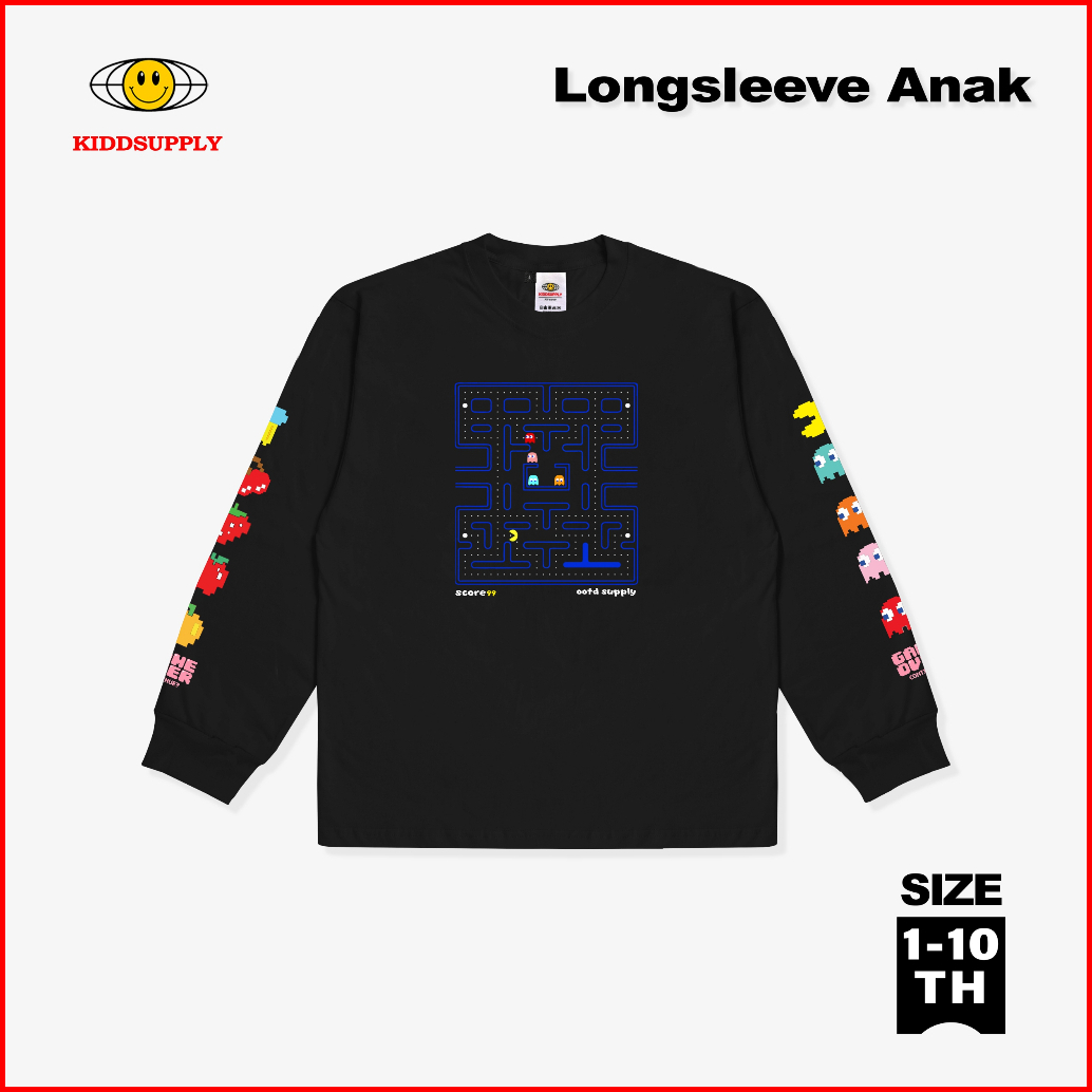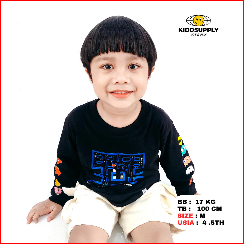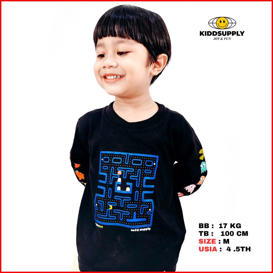 Kiddsupply Kaos Lengan Panjang Anak Pacman Black Atasan Anak Baju Anak Unisex Kdls006