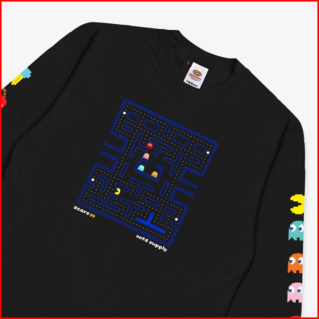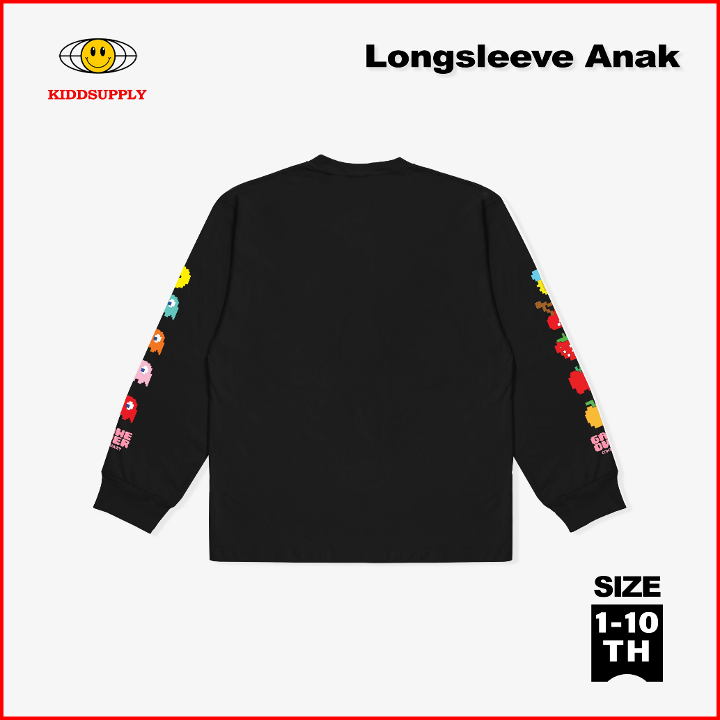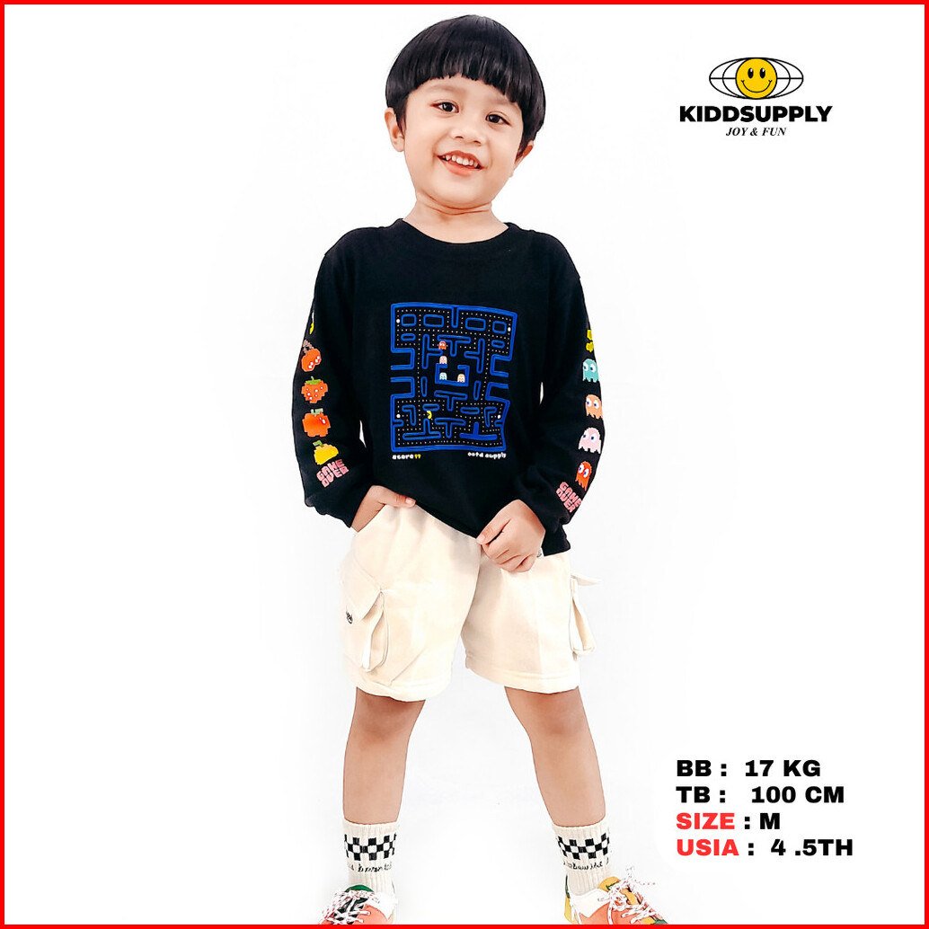 Kiddsupply Kaos Lengan Panjang Anak Pacman Black Atasan Anak Baju Anak Unisex Kdls006
