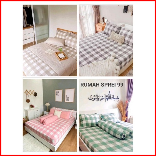Sprei Set Motif Kotak Kotak Aesthetic Sprei Kotak Kotak Seprei Emily Ukuran 180x200 160x200 120x200 100x200