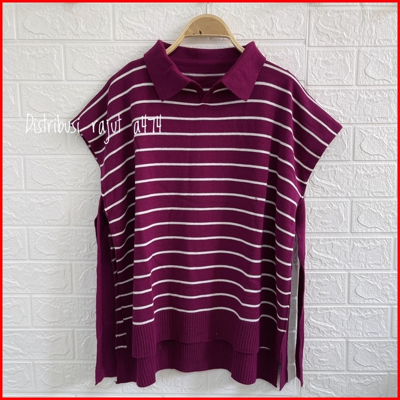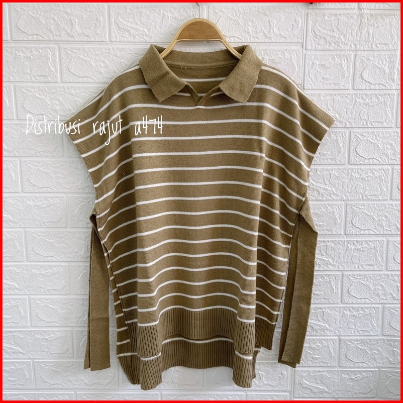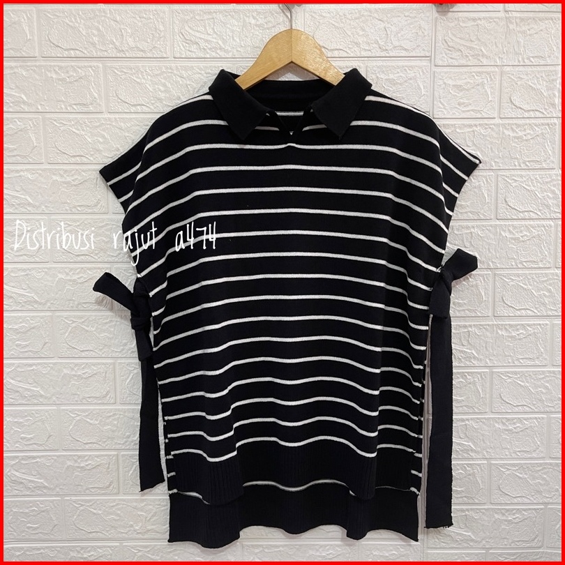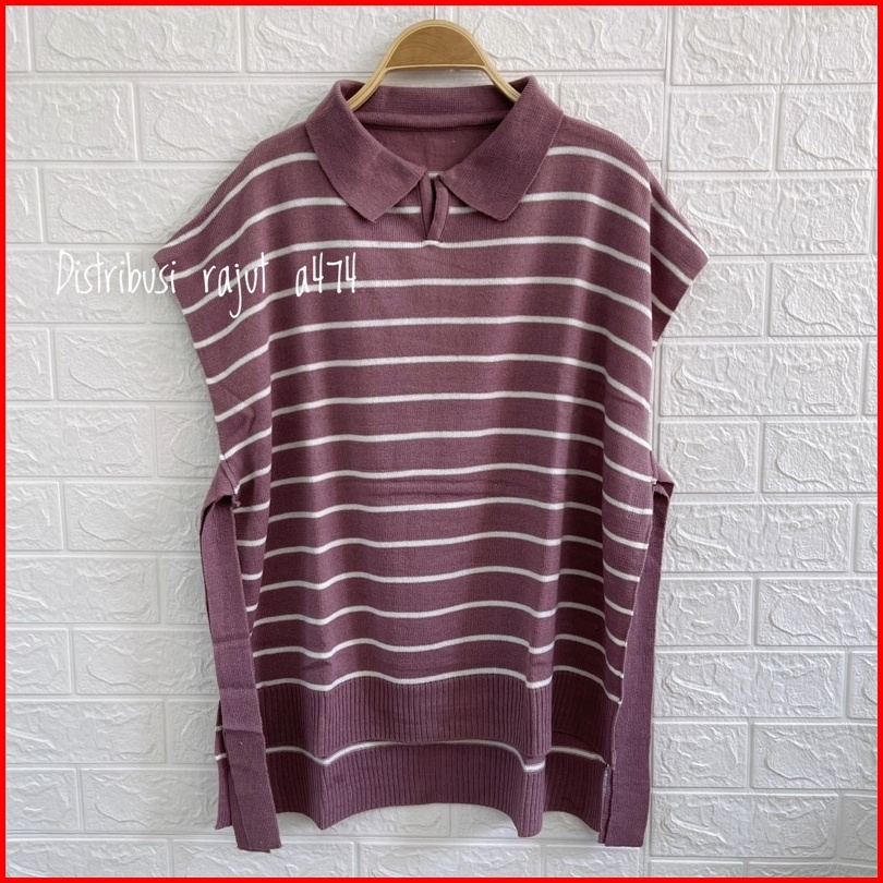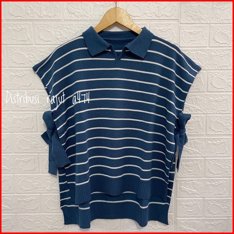 Vest Rompi Kerah Tali Samping Motif Garis Liodra Wanita Oversize