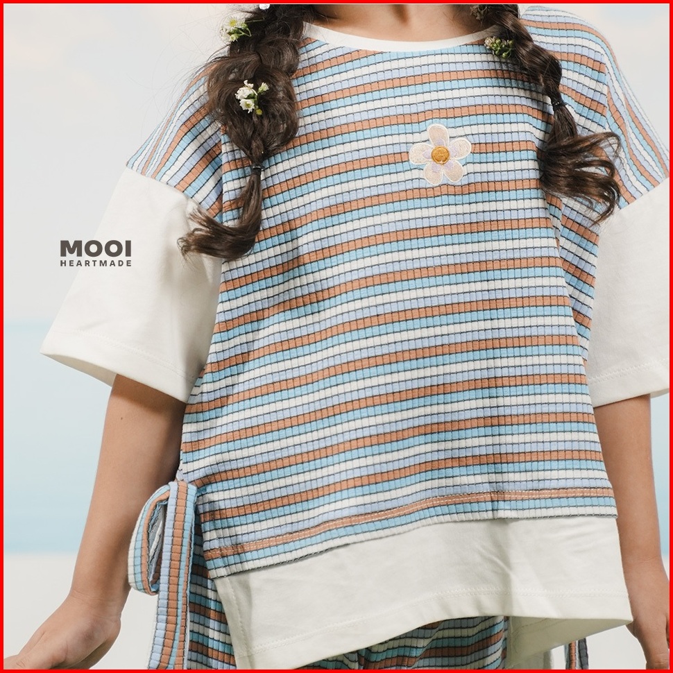 Mooi Atasan Anak Perempuan Chisa Rib Striped Tee