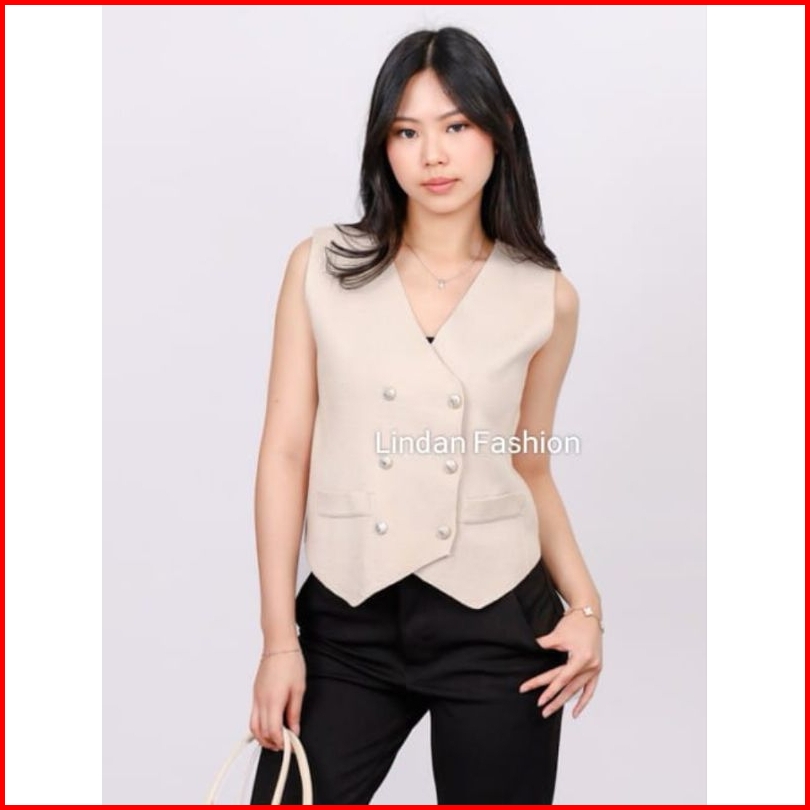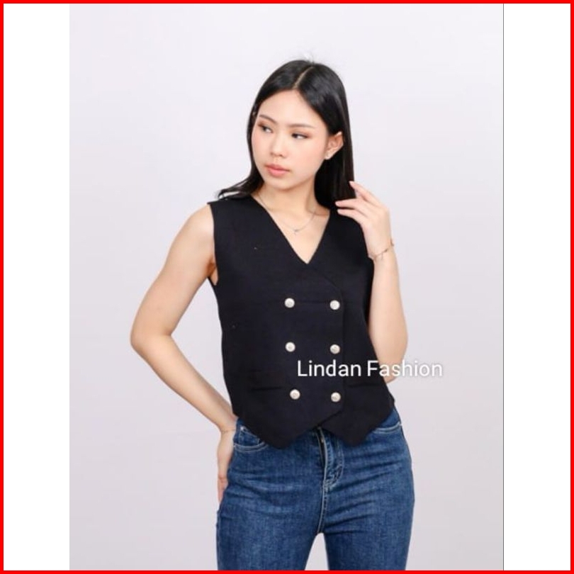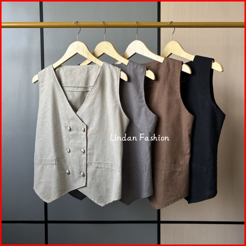 Vest Kekinian Trendy Casual Elegant Vest Kancing Murah Bahan Halus Ootd Gen Z Atasan Rompi Katun Wanita