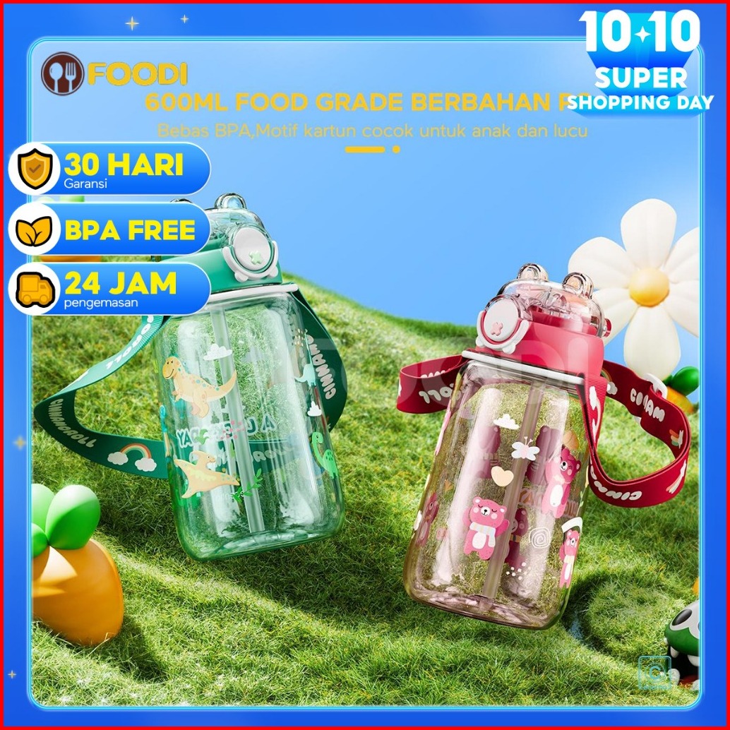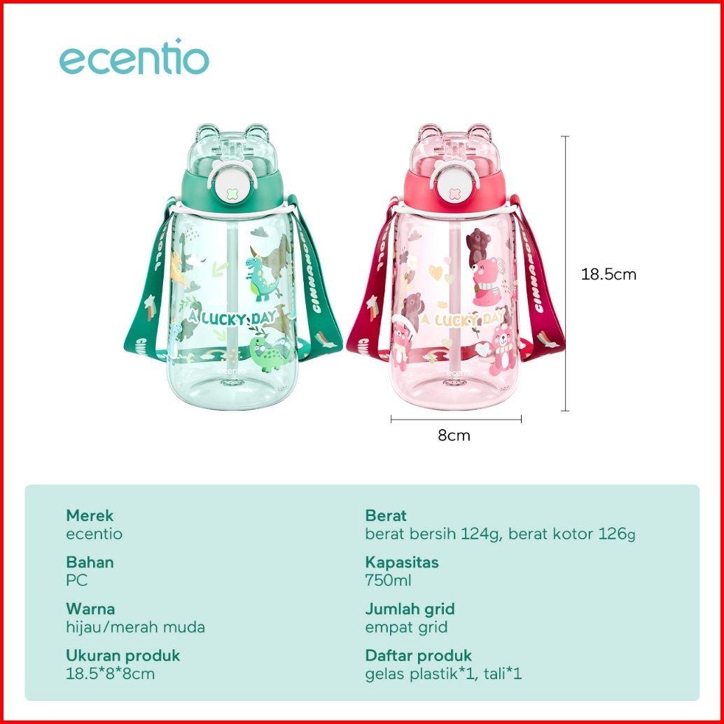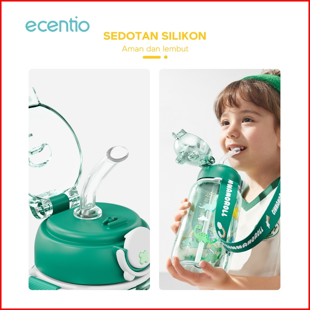 Ecentio Foodi Botol Minum Anak Sekolah 600ml Air Minum Anak Sedotan Silicone Botol Minum 600ml Hijau Pink Sedotan Anak S