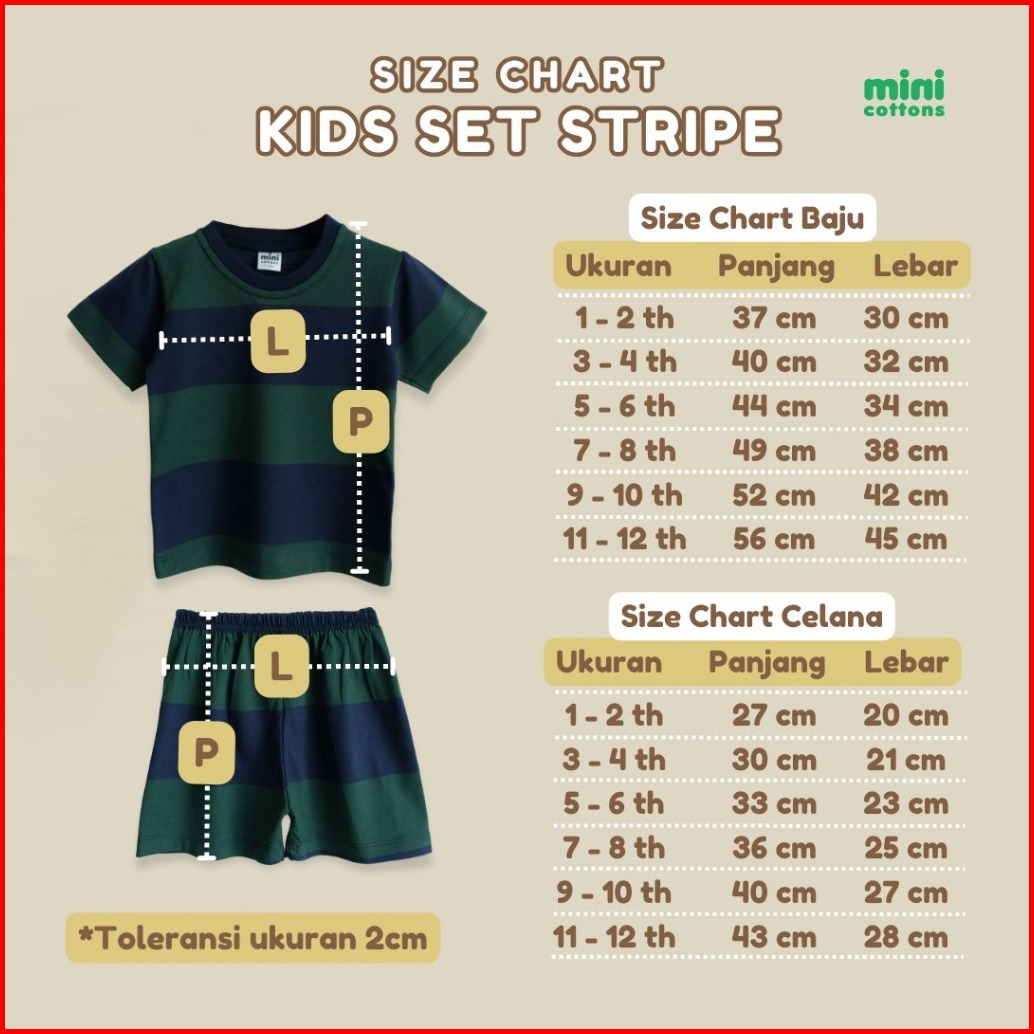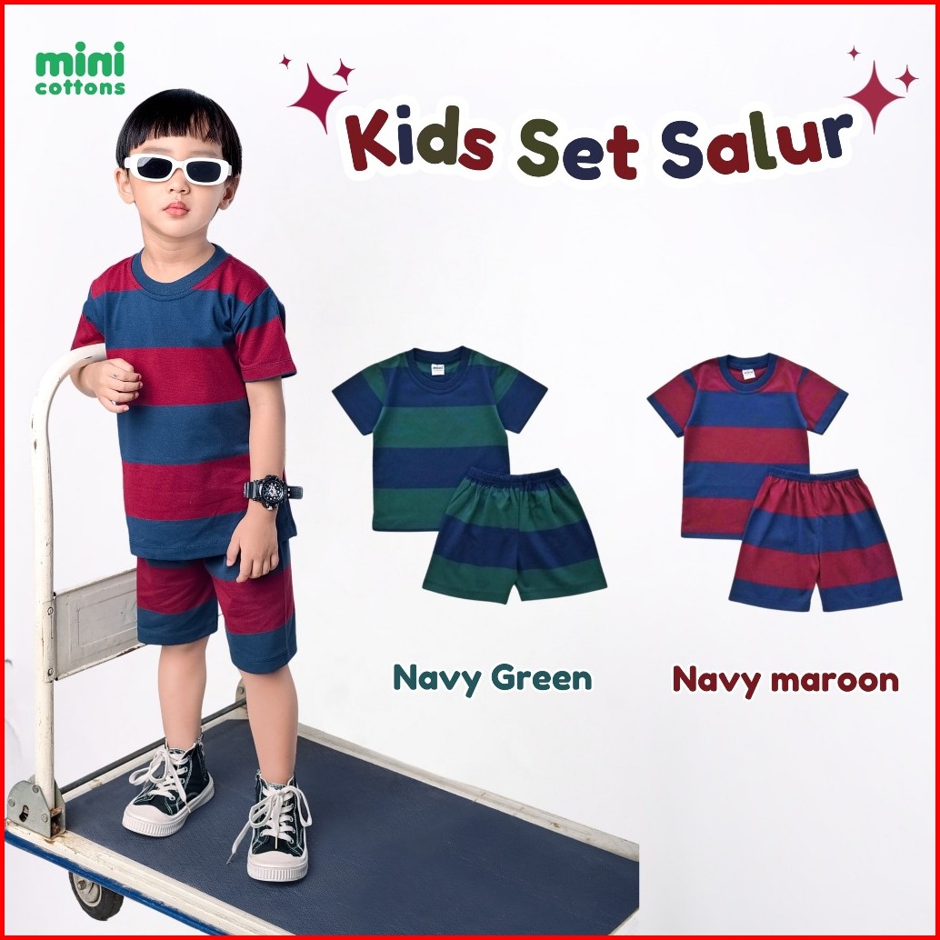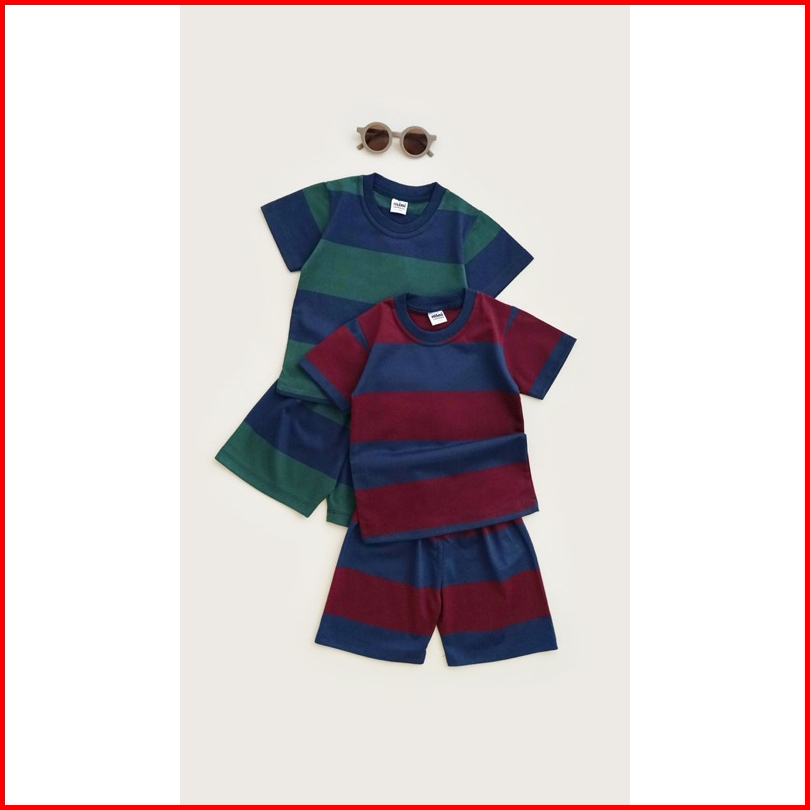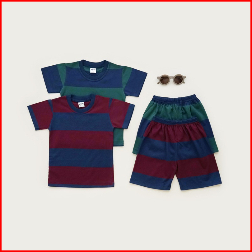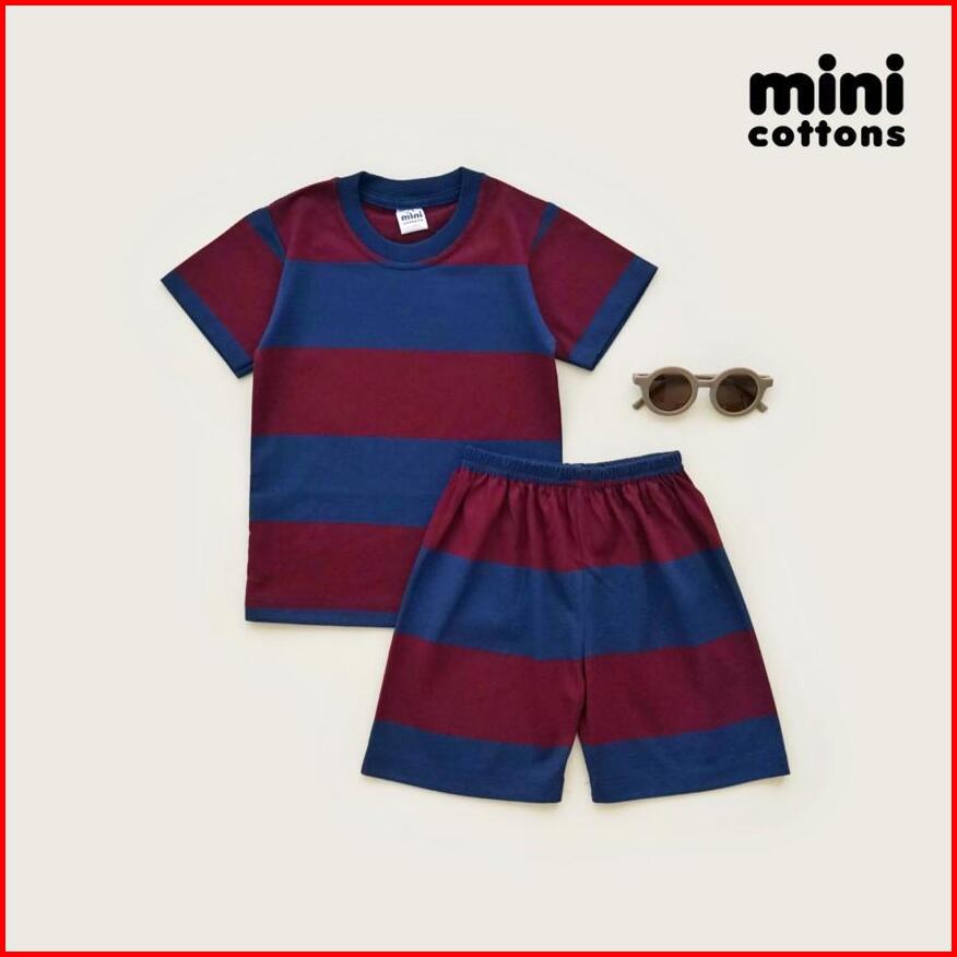 Mini Cottons Setelan Anak Salur Kids Set Stripes Navy Maroon 1-12 Tahun Unisex
