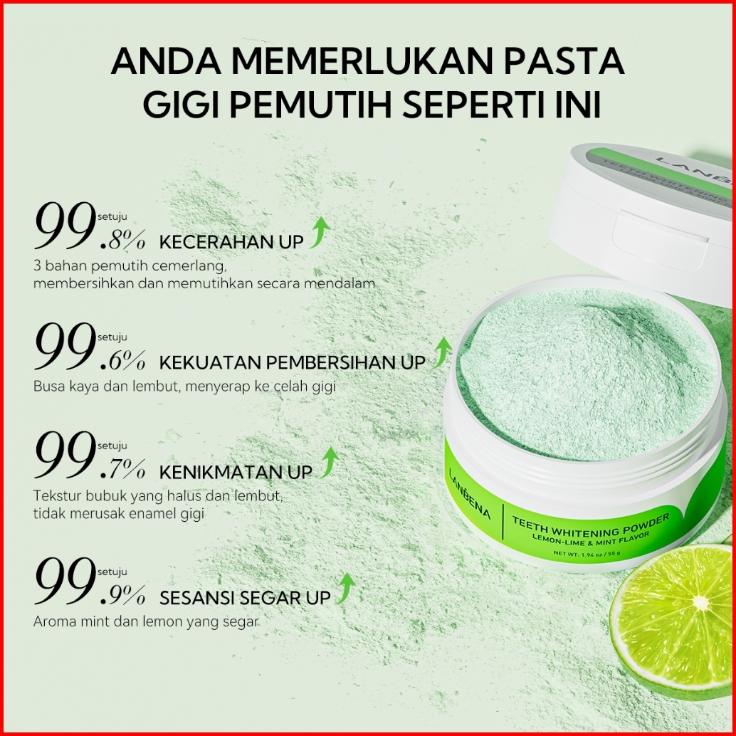Lanbena Lemon Teeth Whitening Powder 55g - Pemutih Gigi Mencerahkan Pasta Gigi Odol