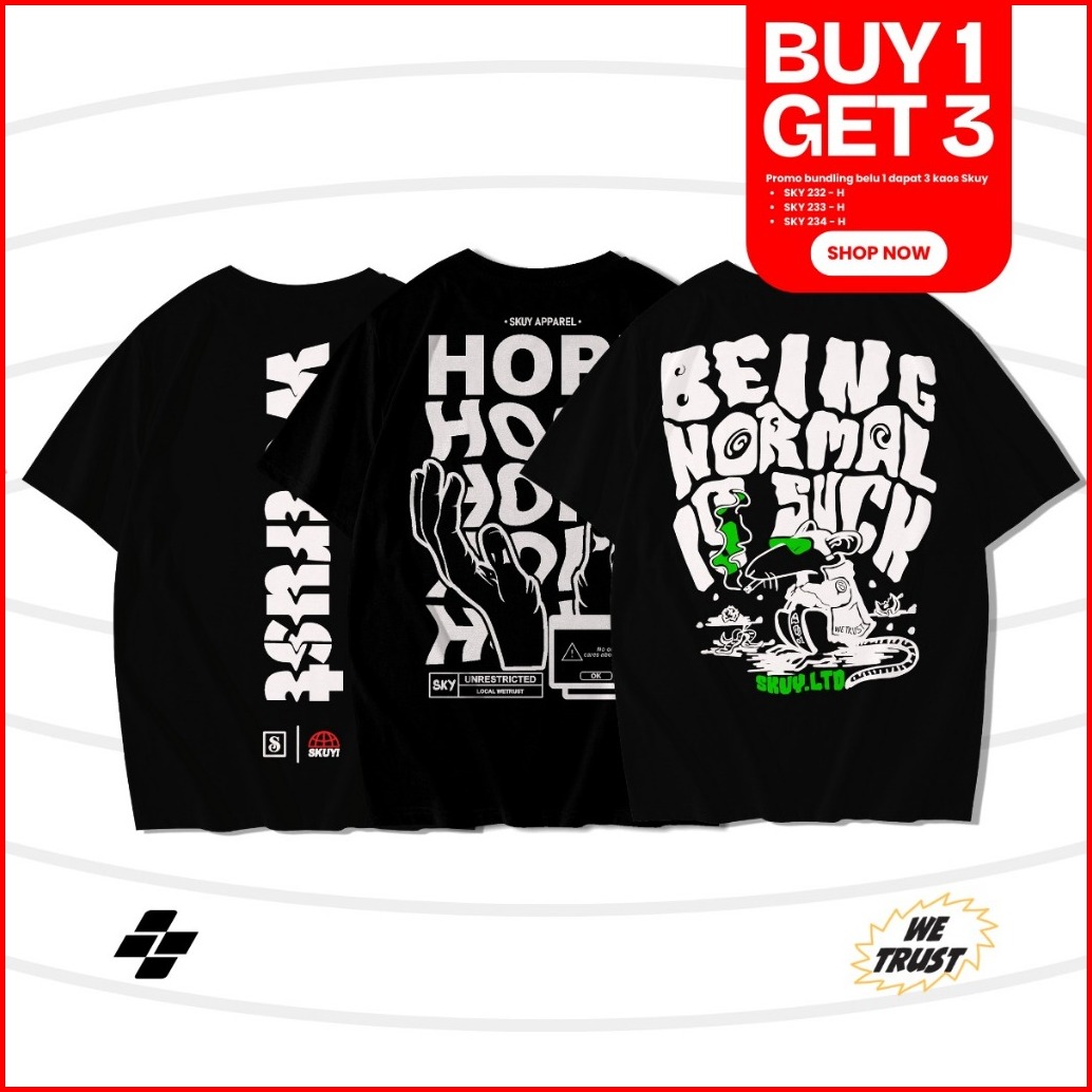 Skuy Buy 1 Get 3 - Kaos Skuy Dewasa Warna Hitam Lengan Pendek Bahan Cotton Combed 24s We Trust Sky233 Hope Sky232 Being