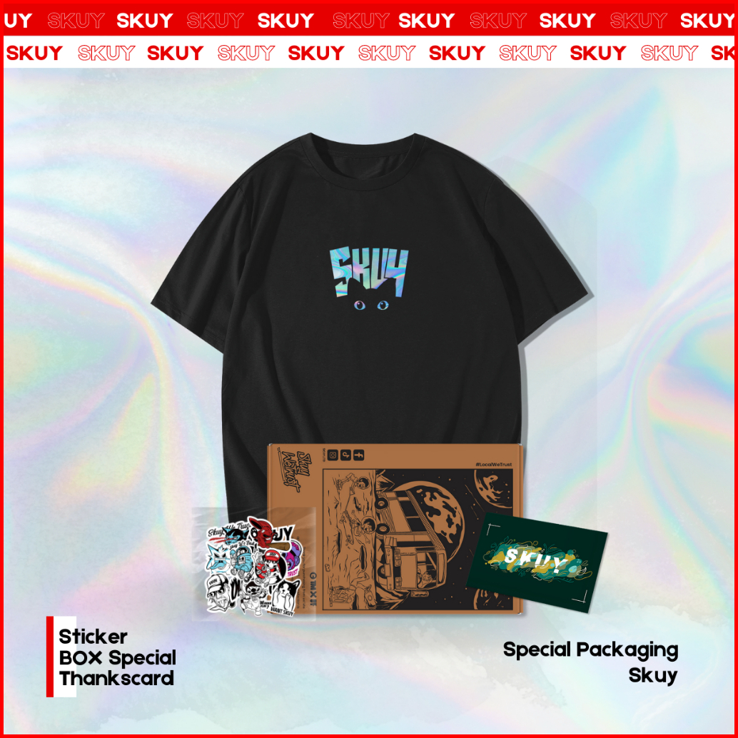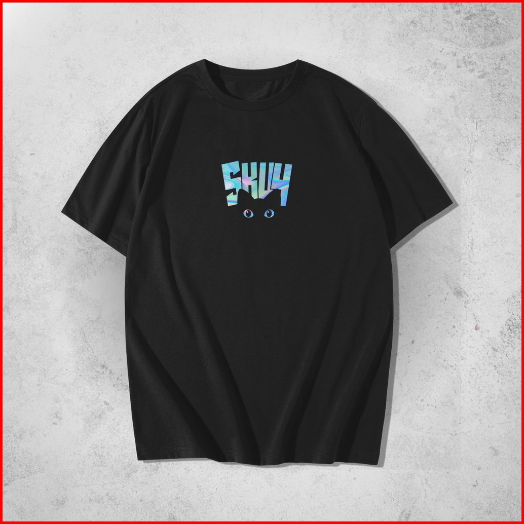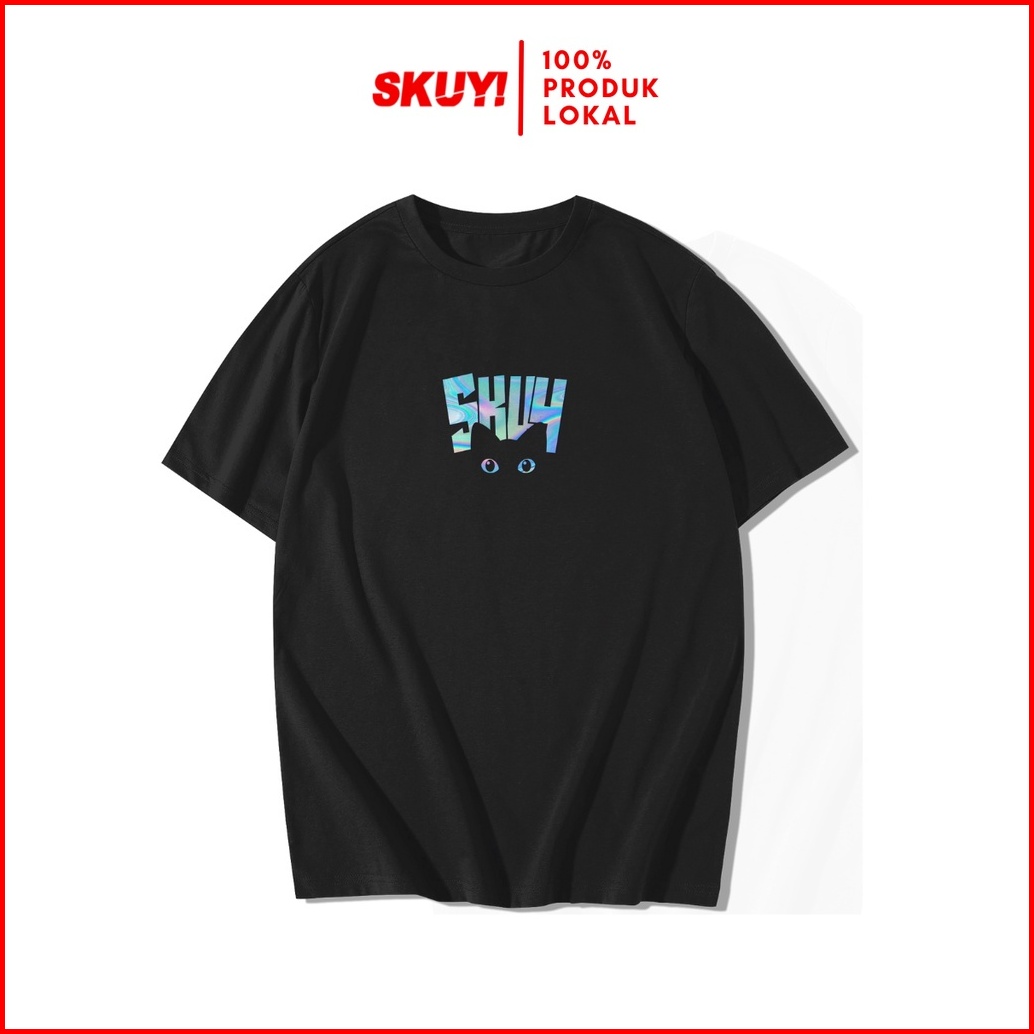 Hologram Series Kaos Skuy Dewasa Hitam Unisex Black Cat Sky131